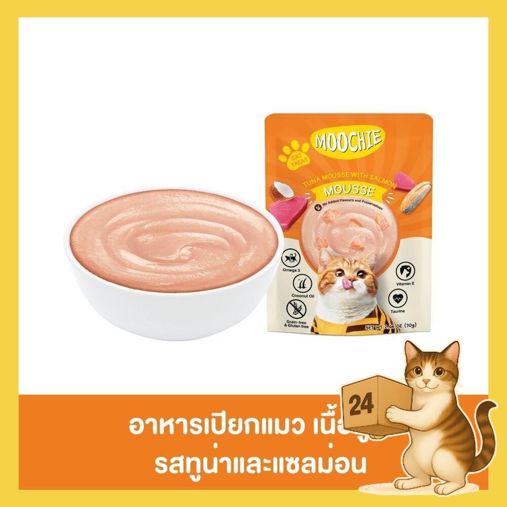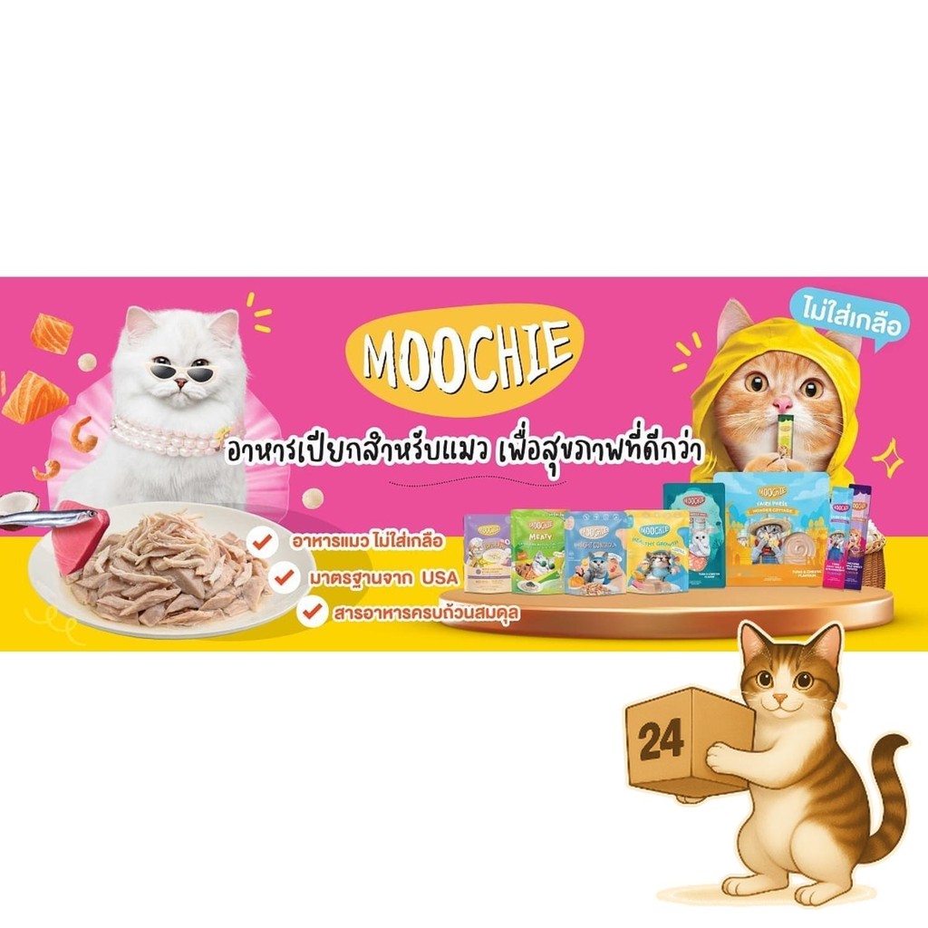 (ครึ่งลัง 24 ซอง) Moochie Cat Mousse อาหารเปียกแมวเนื้อมูส สร้างระบบภูมิคุ้มกัน จากวัตถุดิบคุณภาพ
