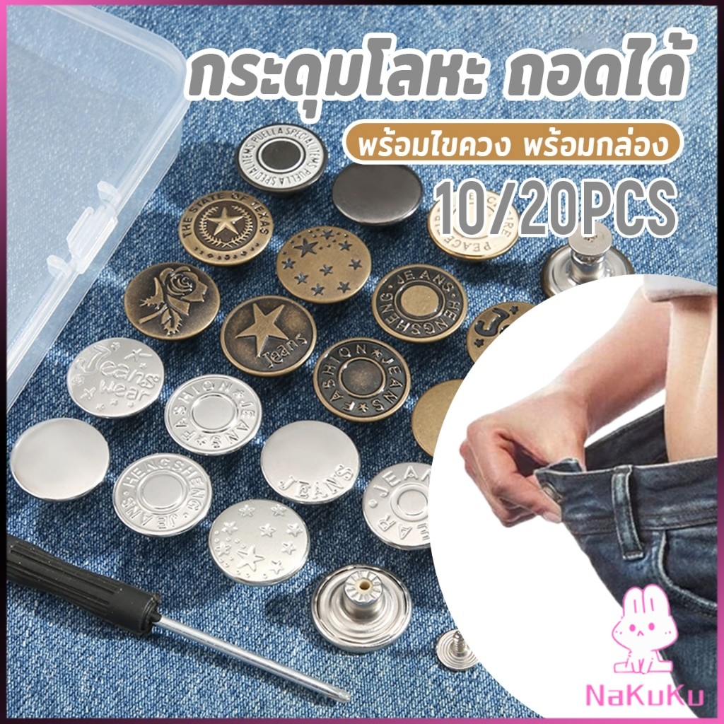 NKK กระดุมขยายเอวกางเกงยีนส์ กระดุมโลหะ ถอดได้ ใช้ซ้ําได้ พร้อมไขควง พร้อมกล่อง 10 ชิ้น/20 ชิ้น Jeans buttons