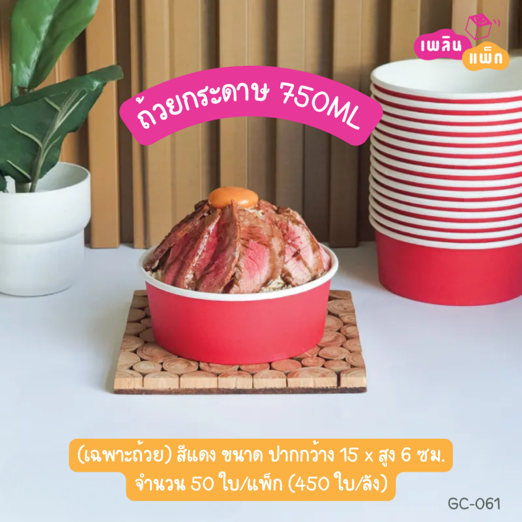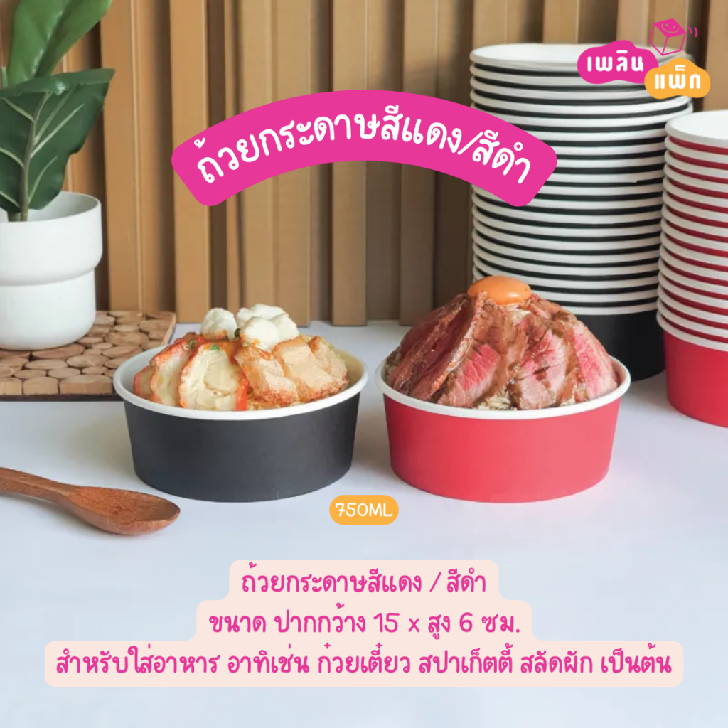 ถ้วยอาหารกระดาษ สีดำ สีแดง ไม่พิมพ์ลาย 750 | 850 มล. แพ็กละ 50 ใบ