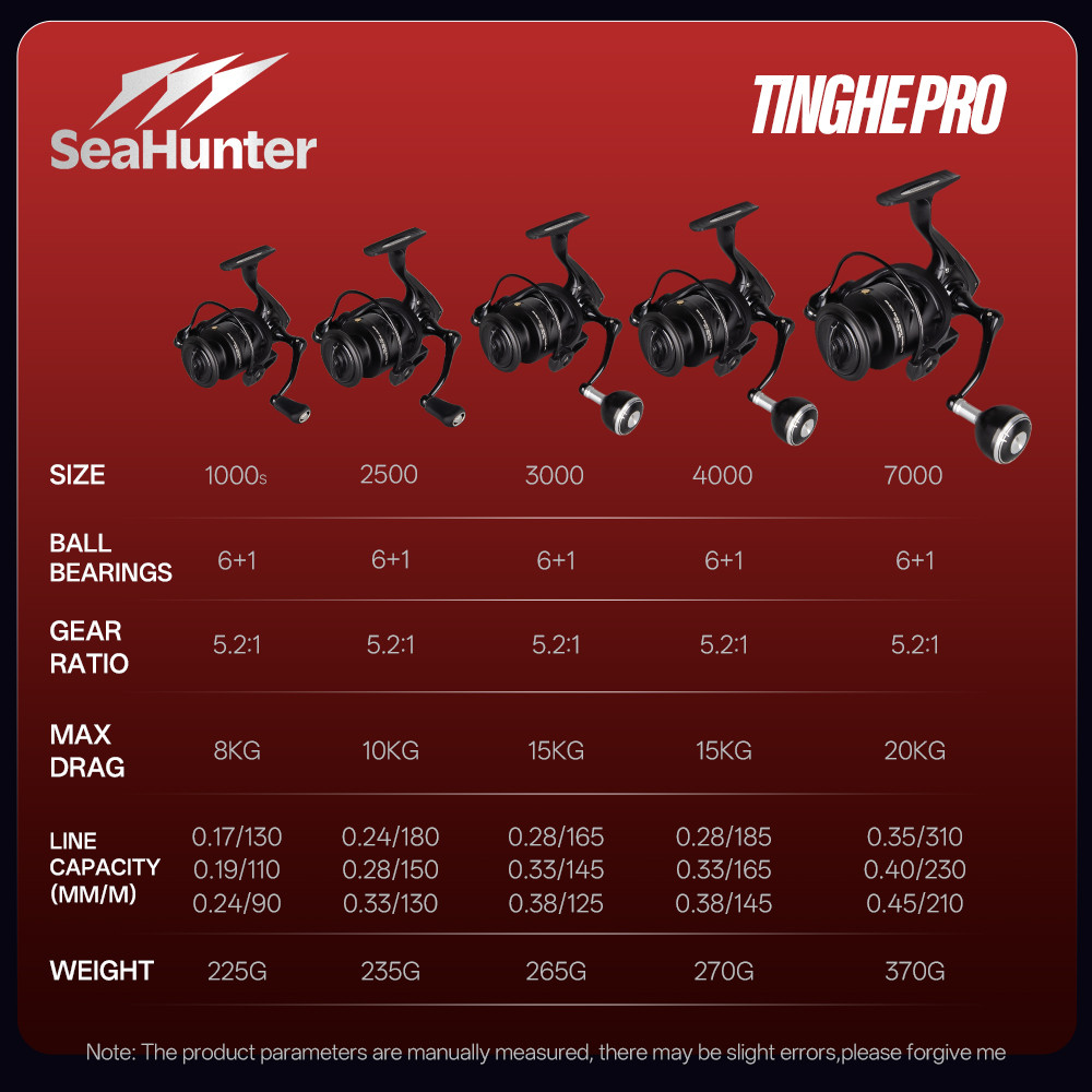 SeaHunter Tinghe Pro รอกสปินนิ่ง ลากสูงสุด 20KG 6+1BB 5.2:1 Power handle อลูมิเนียม รอกเบส รอกตกปลา ใช้ได้ทั้งน้ำจืดเค็ม