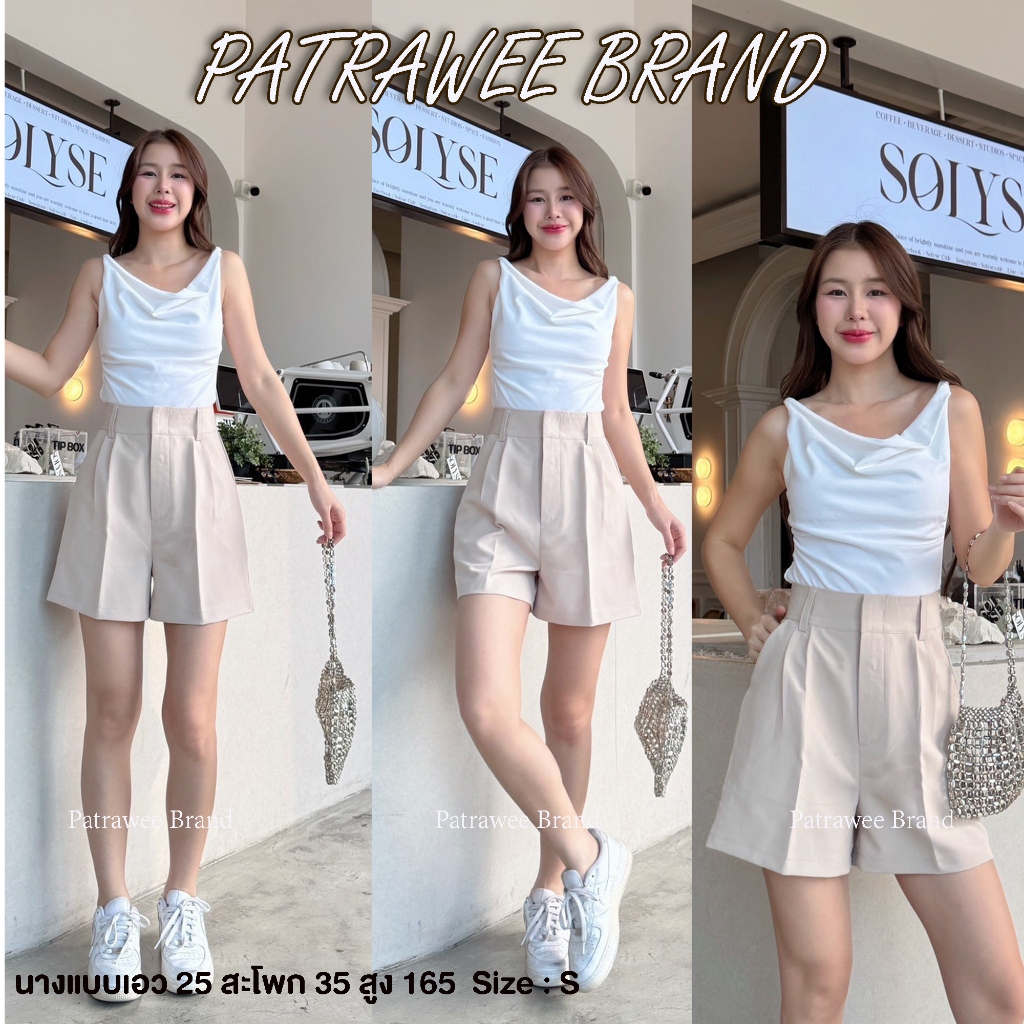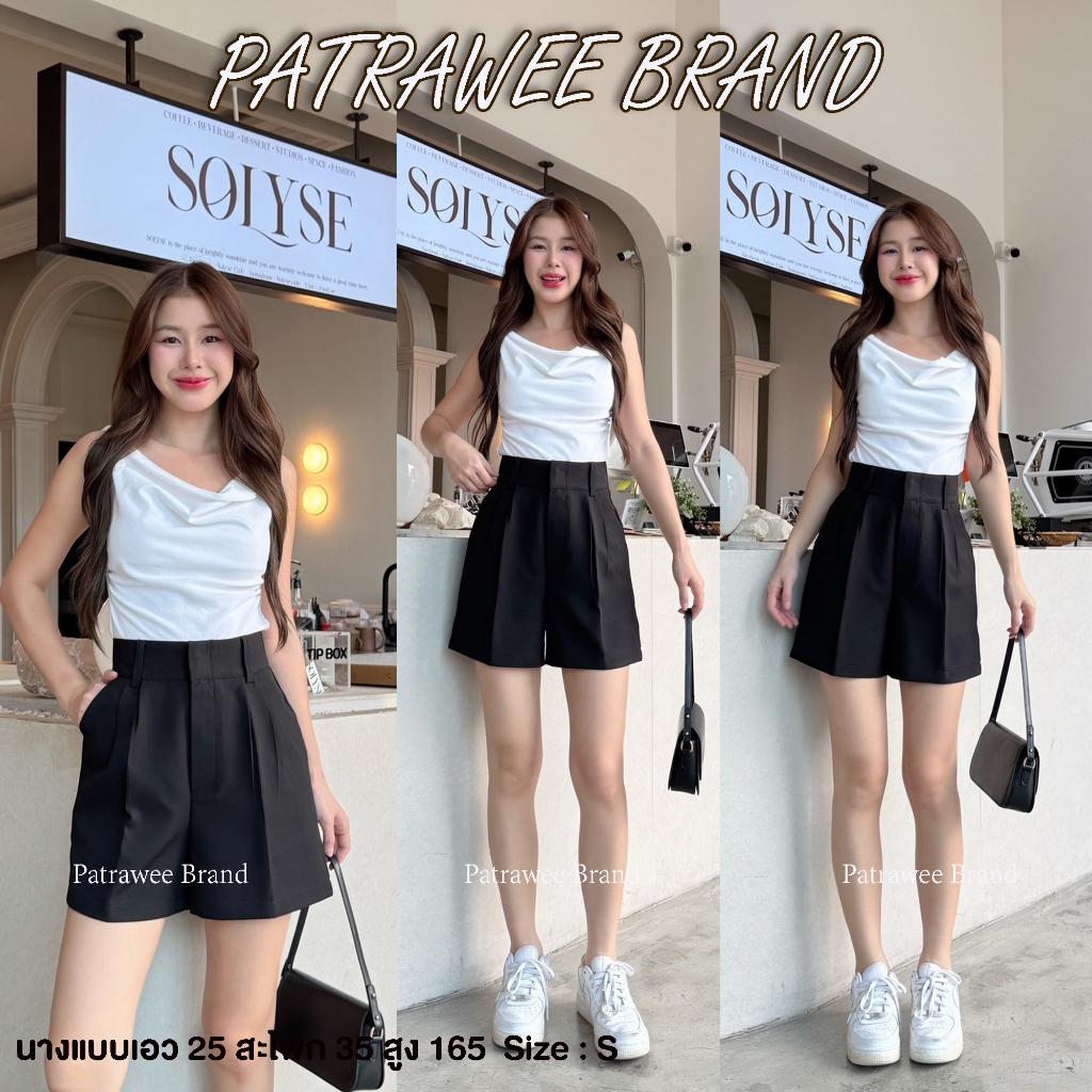 P44 กางเกงขาสั้นเอวสูง มีกระเป๋าข้าง ขาสั้นเอวสูง กางเกงขาสั้นใส่ทำงาน ทรงสวย สีพื้น