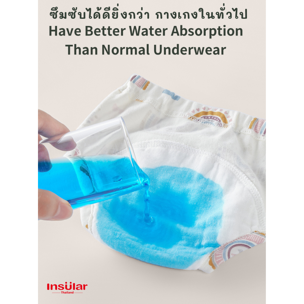 [แพ็ค 3 ชิ้น] อินซูลาร์ กางเกงซับฉี่ สำหรับฝึกเลิกเพิส เด็ก กันน้ำ ซึมซับดีเยี่ยม 6 ชั้น ระบายอากาศดี ไม่รั่วซึม BU