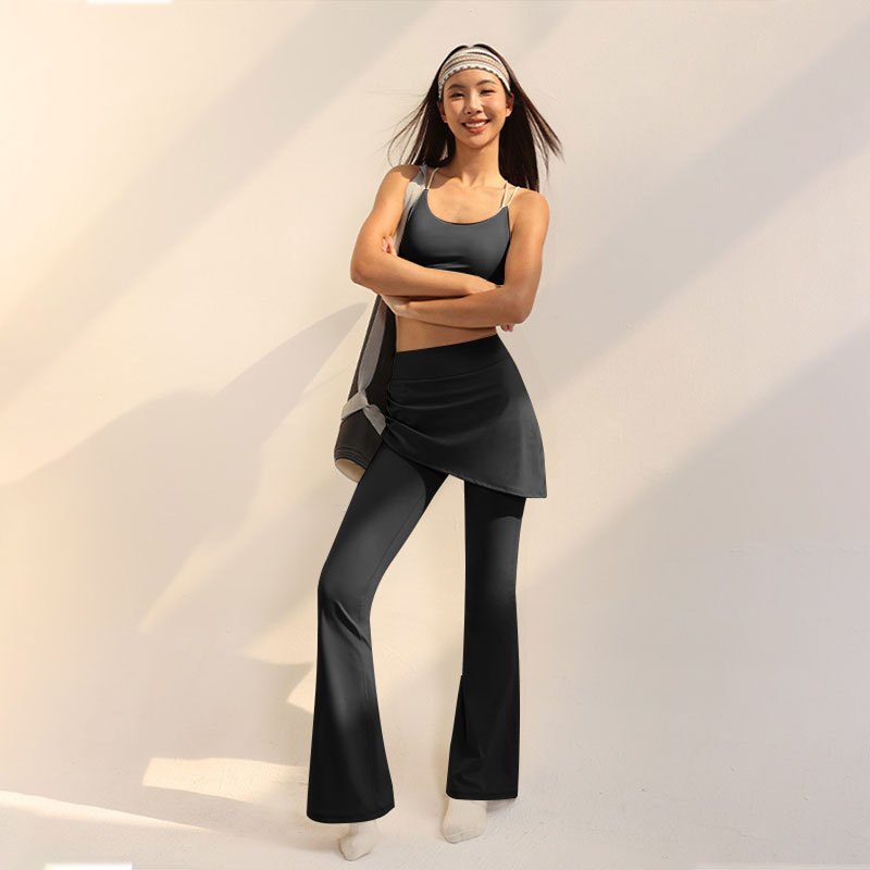 FUYOGI กางเกงขาบานและกระโปรงย่นสำหรับผู้หญิง ดีไซน์แฟชั่นสำหรับการฝึกโยคะและออกกำลังกาย กางเกงวิ่ง