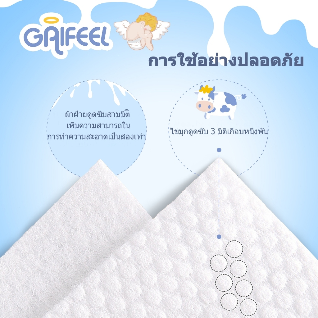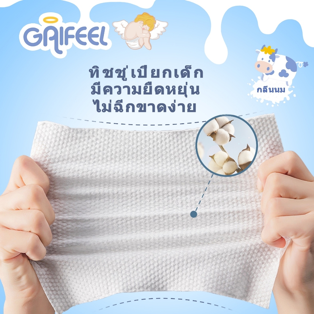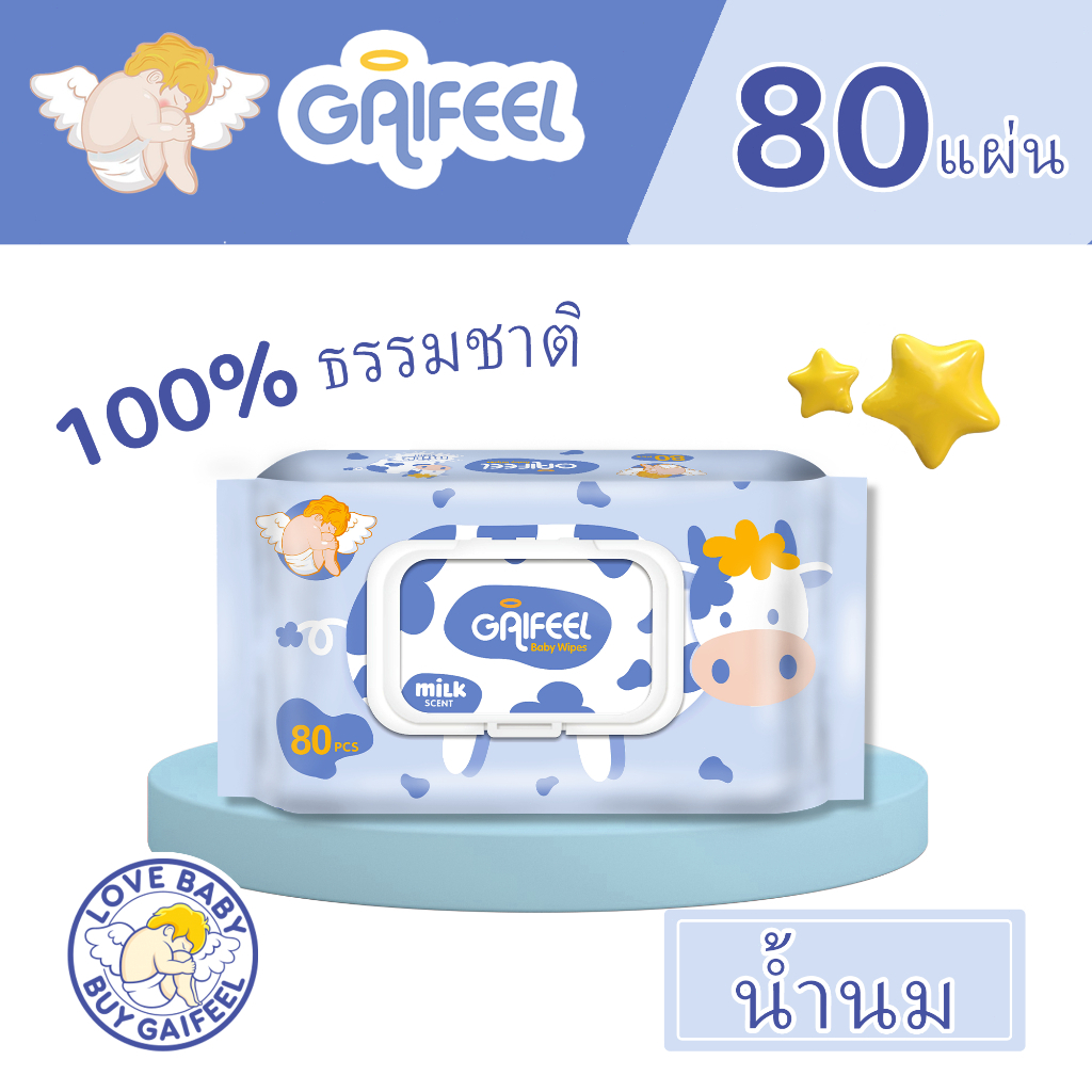 GAIFEEL กระดาษทิชชู่เปียกสำหรับทารกและเด็กเล็ก กลิ่นนม 1 แพ็ค 80 แผ่น