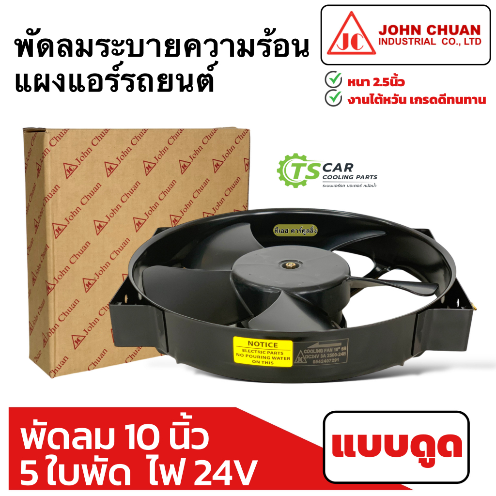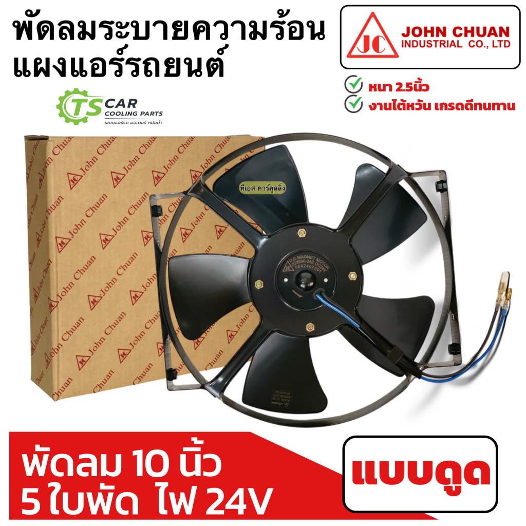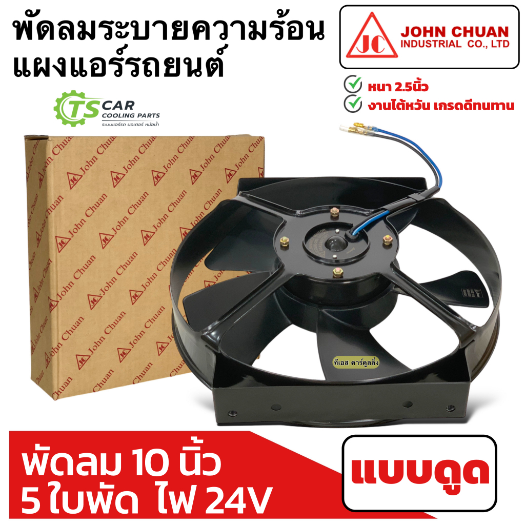 พัดลมระบายร้อน แผงแอร์ รถยนต์ 10นิ้ว 5ใบ 24V แบบดูด (JohnChuan 2500-24E) หม้อน้ำ พัดลม มอเตอร์พัดลม พัดลมเสริมแอร์ แอร์
