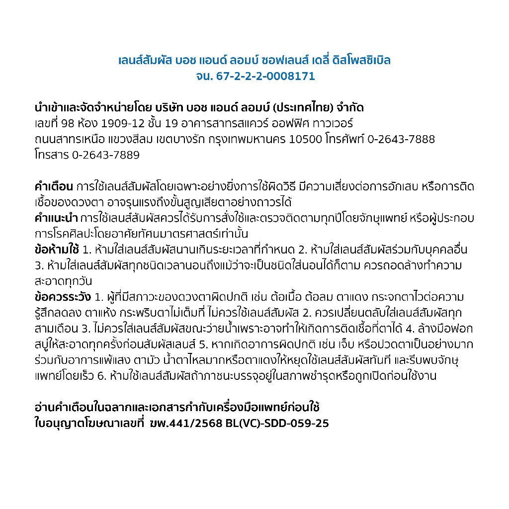 Bausch & Lomb SOFLENS คอนแทคเลนส์รายวัน 30 ชิ้น (15คู่)
