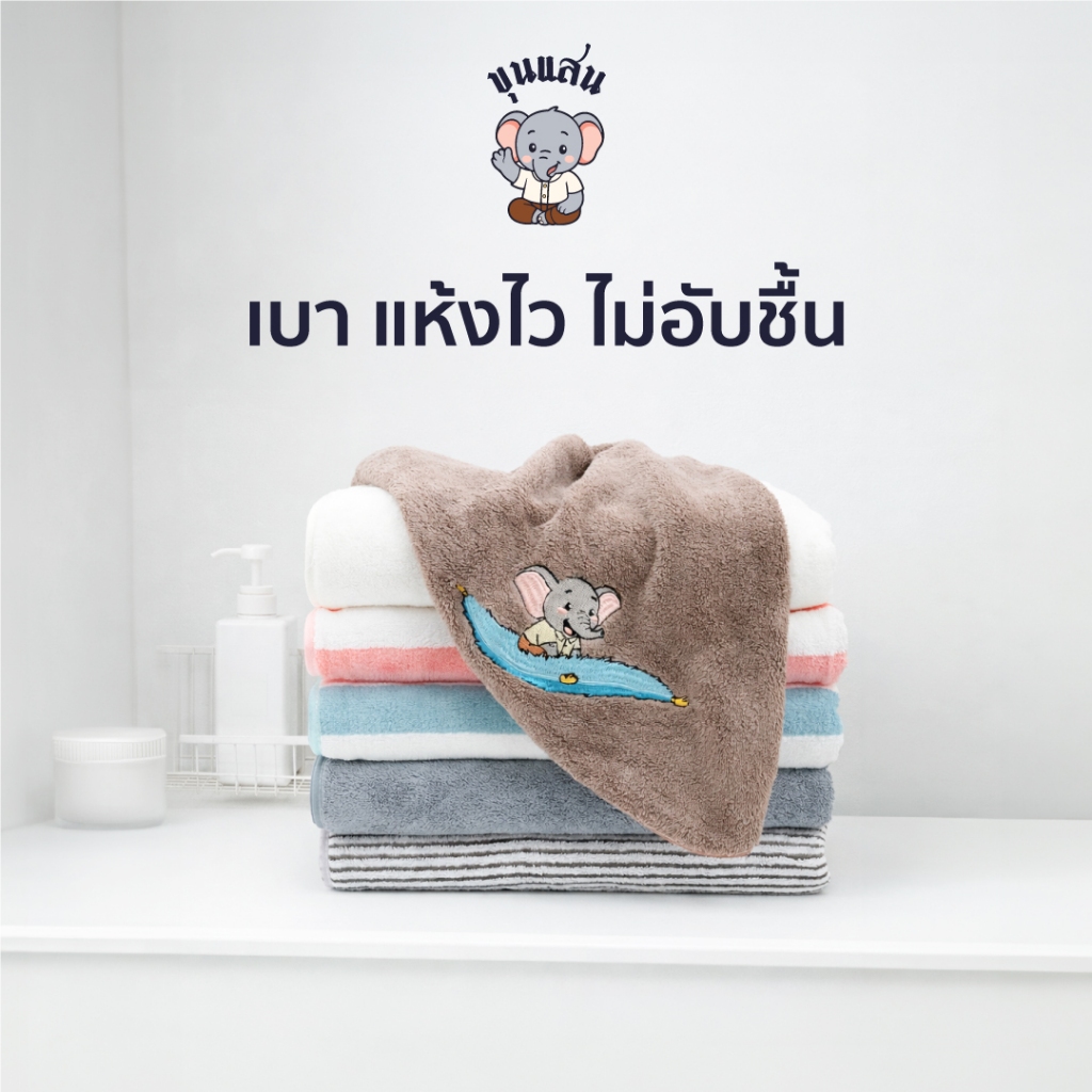 ผ้าขนหนู ขุนแสน รุ่น Soft Touch นุ่มมาก เบา แห้งไว ไม่มีกลิ่นอับ ขนาด140*70 cm วัสดุ Polyester+ฝ้าย