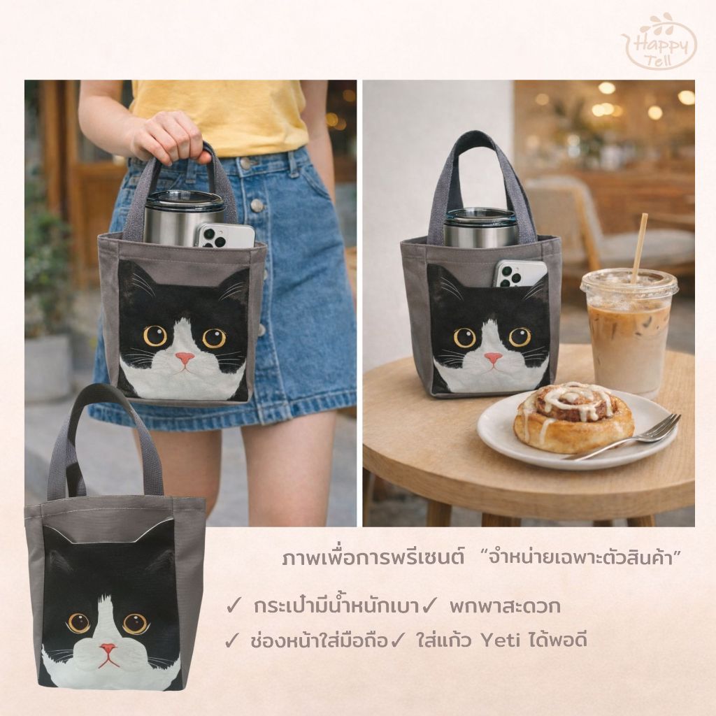 Happy Tell กระเป๋าใส่แก้ว Yeti bag มีช่องใส่ของด้านหน้า ผ้าแคนวาสพิมพ์ลายใส่ ลายน้องหมา น้องแมวสุดน่ารัก
