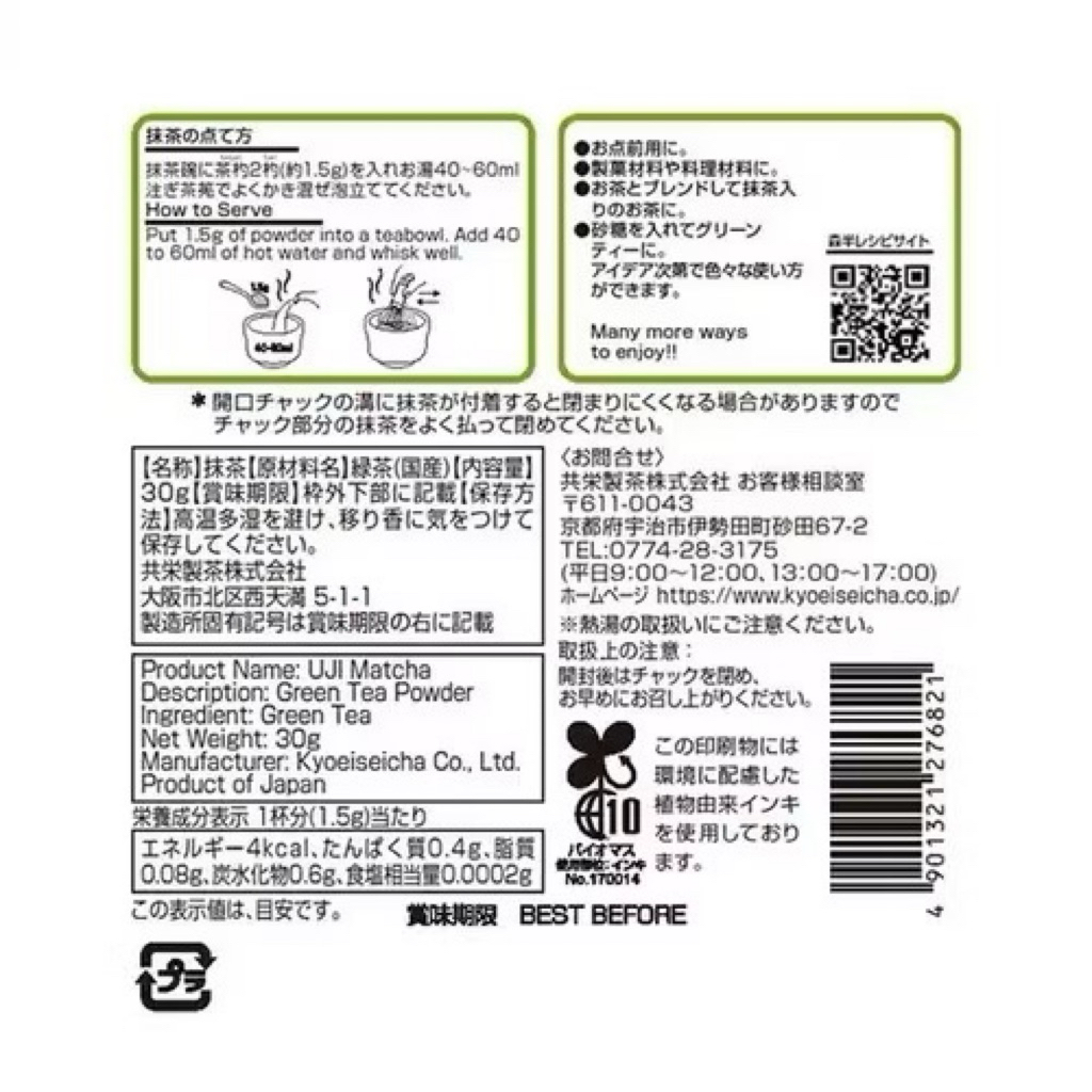 Morihan Uji Matcha Power 30g แพ็คเก็จใหม่ มัทฉะเกรดพรีเมียนโทนสาหร่ายไม่ขมไม่ฝาด