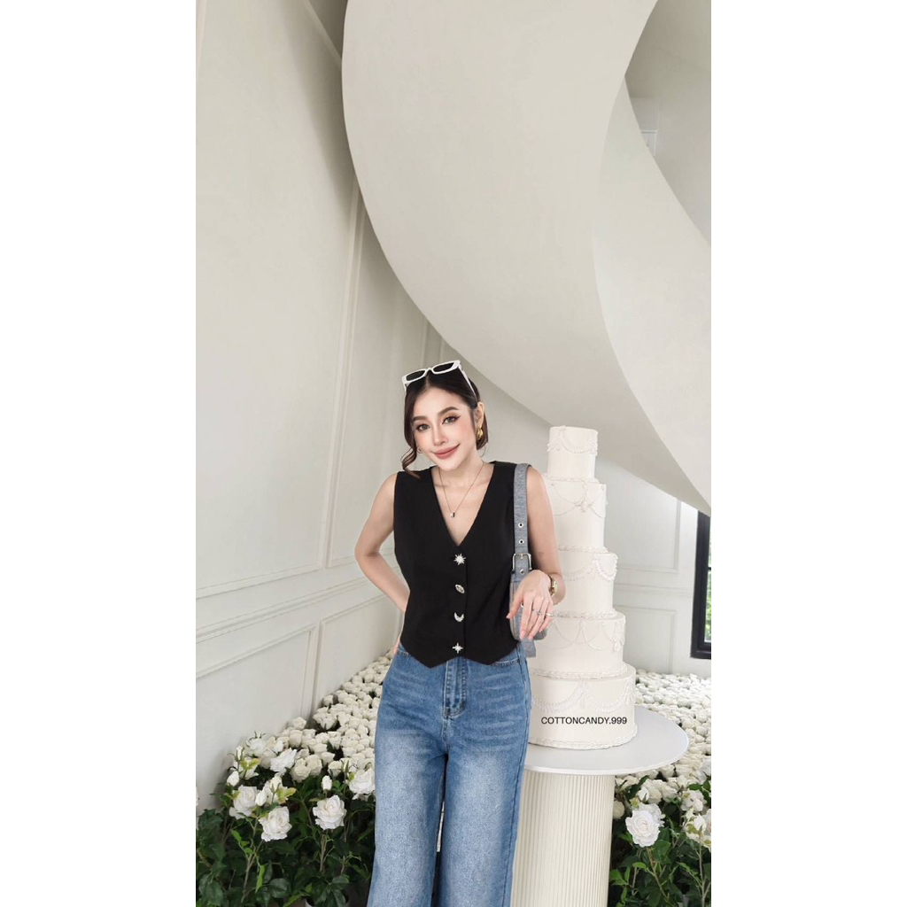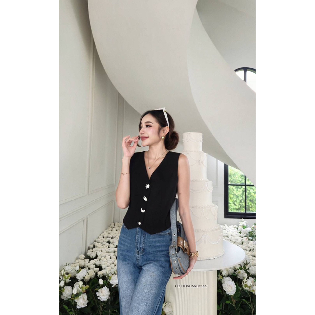 Galaxy Top : เสื้อแขนกุดแต่งกระดุมกาแลคซี่ เก๋มาก🌞🪐⭐️