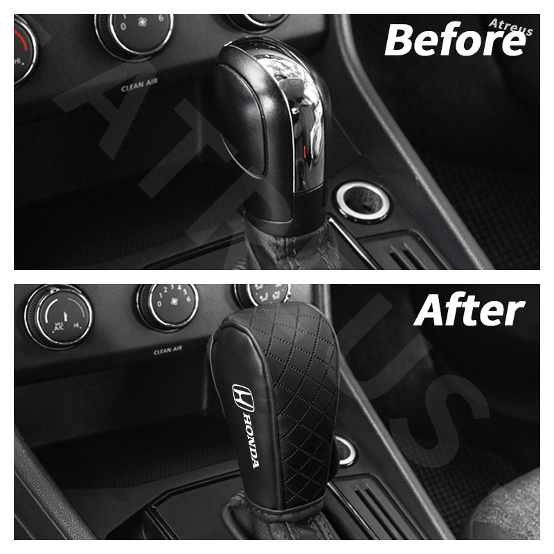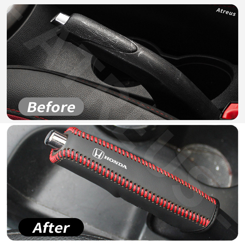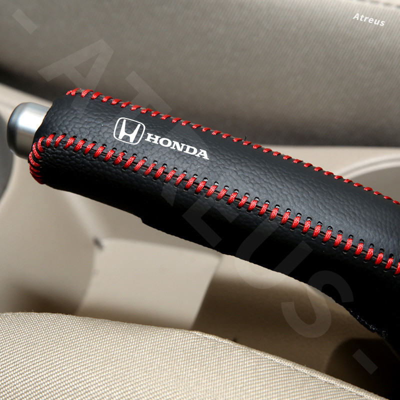 Honda ฝาครอบเกียร์เบรกมือ หนัง ปลอกหนังหุ้มคันเกียร์รถยนต์ ที่ปรับระดับเกียร์ ฝาครอบ ปลอกหุ้มลูกบิดเบรกมือรถยนต์ สำหรับ Honda Civic 11th 10th gen fe fk fd Fit ge HRV Jazz gk City Hatchback Odyssey CRV BRV WRV Mugen