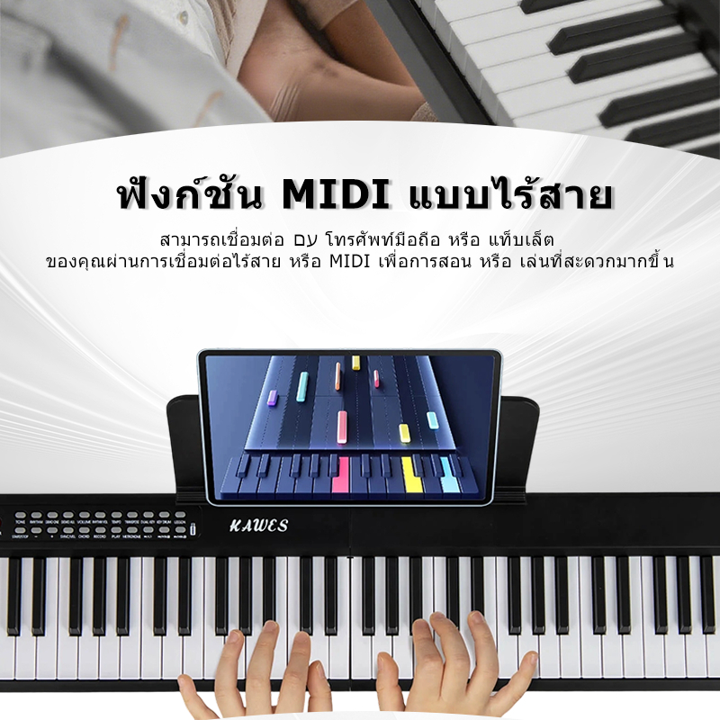 เปียโนไฟฟ้า KAWES 88/61คีย์ ปุ่มพับเก็บได้ เปียโนดิจิตอลมัลติฟังก์ชั่น พร้อมบลูทูธ