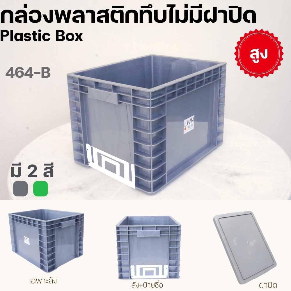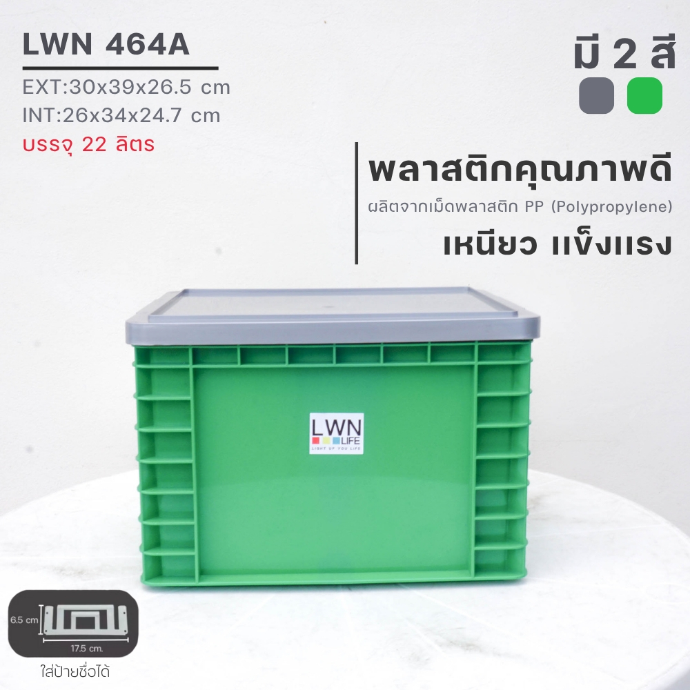 ลังพลาสติกทึบ ลังทึบ ทรงเตี้ย ขนาด 22 ลิตร รุ่น 464AB แบบมีฝา และไม่มีฝาปิด มีป้ายชื่อ ใส่ A4 ได้