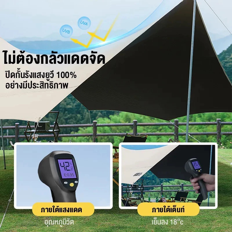 อุปกรณ์ครบชุด ฟลายชีท ผ้าใบ 3x3/3x4/3x6m เต้นท์แคมปิ้ง อุปกรณ์เดินป่าตั้งแคมป์ กันแดด กันฝน ฟรายชีท พร้อมเสา2ต้น