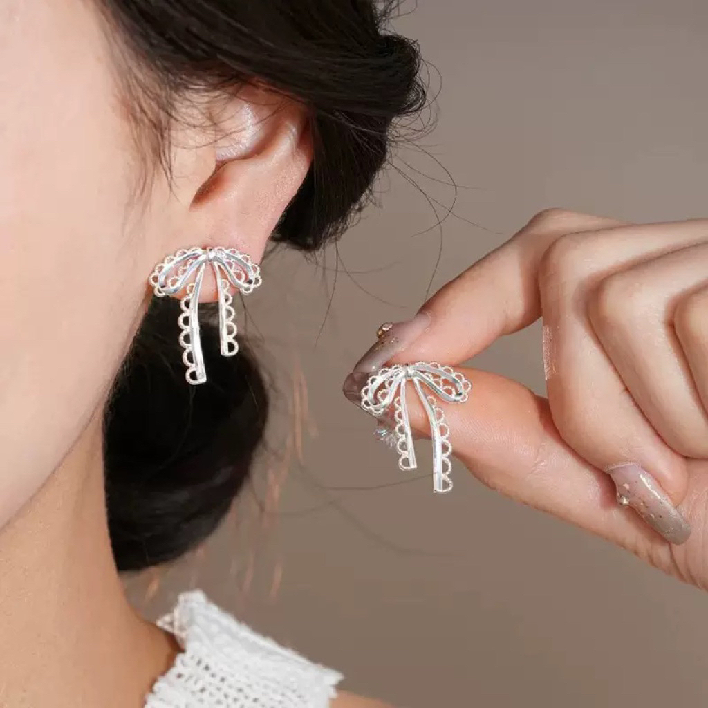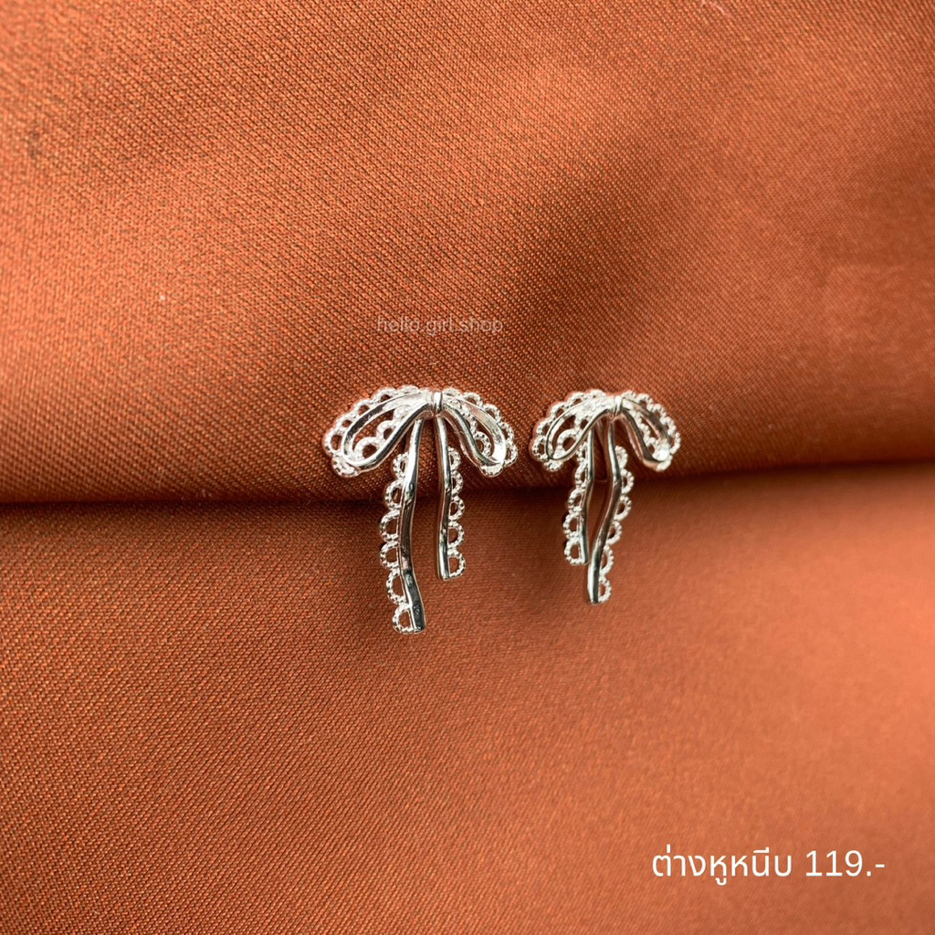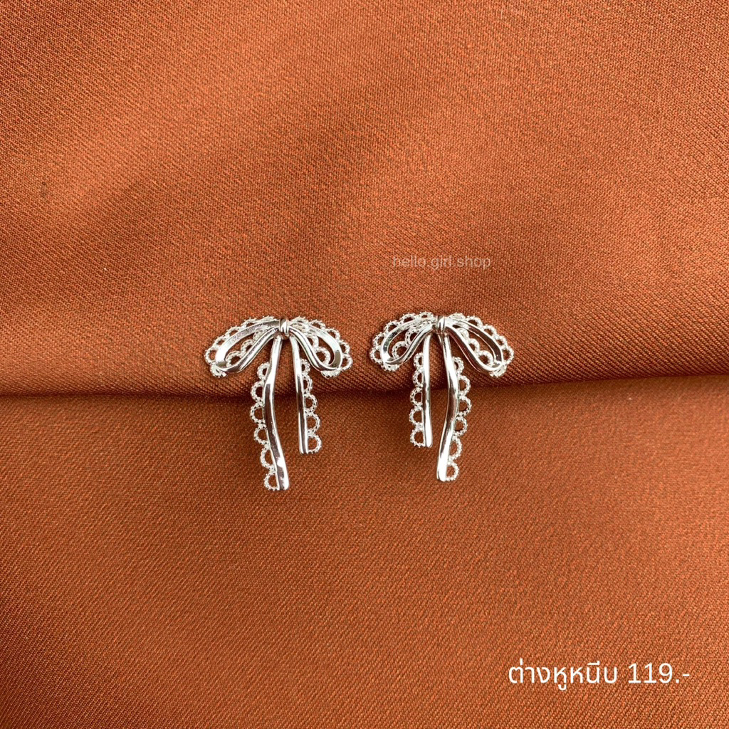 ( ต่างหูหนีบ ขดลวด ) ต่างหูโบว์ สีเงิน