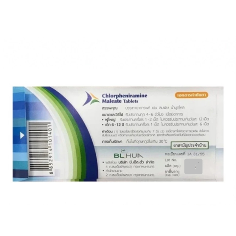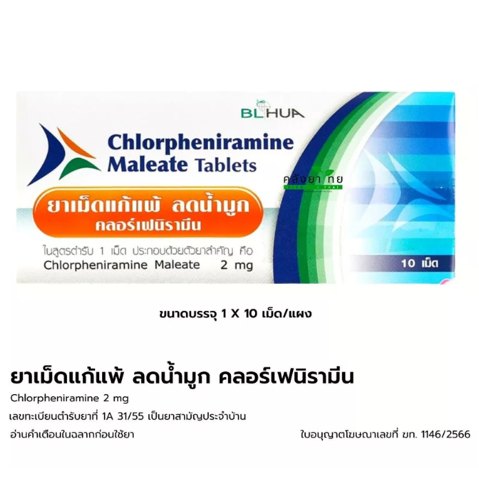 (ยกกล่อง10แผง) CPM Chlorpheniramine 2mg. คลอเฟน 2 มก ยาแก้แพ้ ลดน้ำมูก บริษัท BL HUA ยาสามัญประจำบ้าน