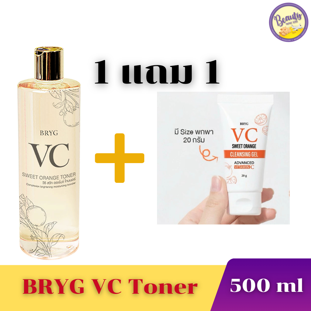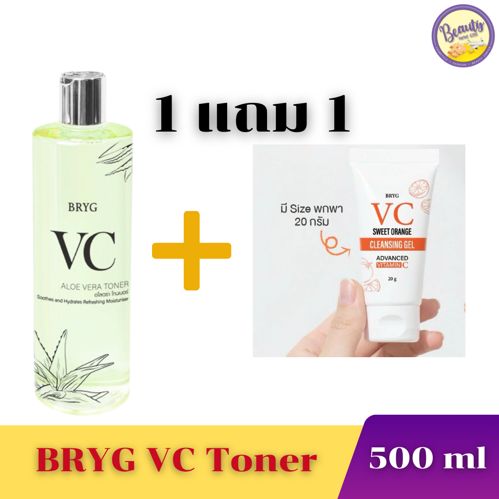 (1 แถม 1) VC โทนเนอร์ Toner BRYG Aloe Vera & Sweet Orange 500ml Free Cleansing Gel 10ml(1pcs) โทนเนอร์