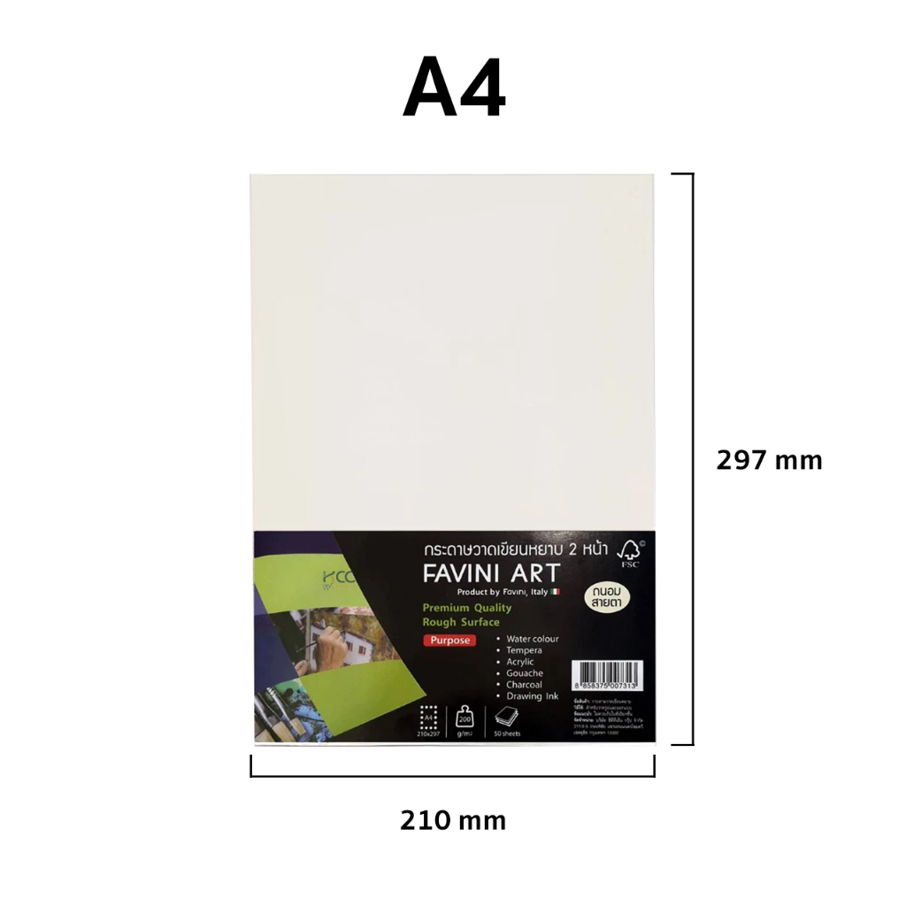 กระดาษ กระดาษร้อยปอนด์ FAVINI ART ฟาวินี่ อาร์ต หนา 200g A3/A4/A5 ผิวหยาบ 50 แผ่น (จำนวน1แพ็ค)