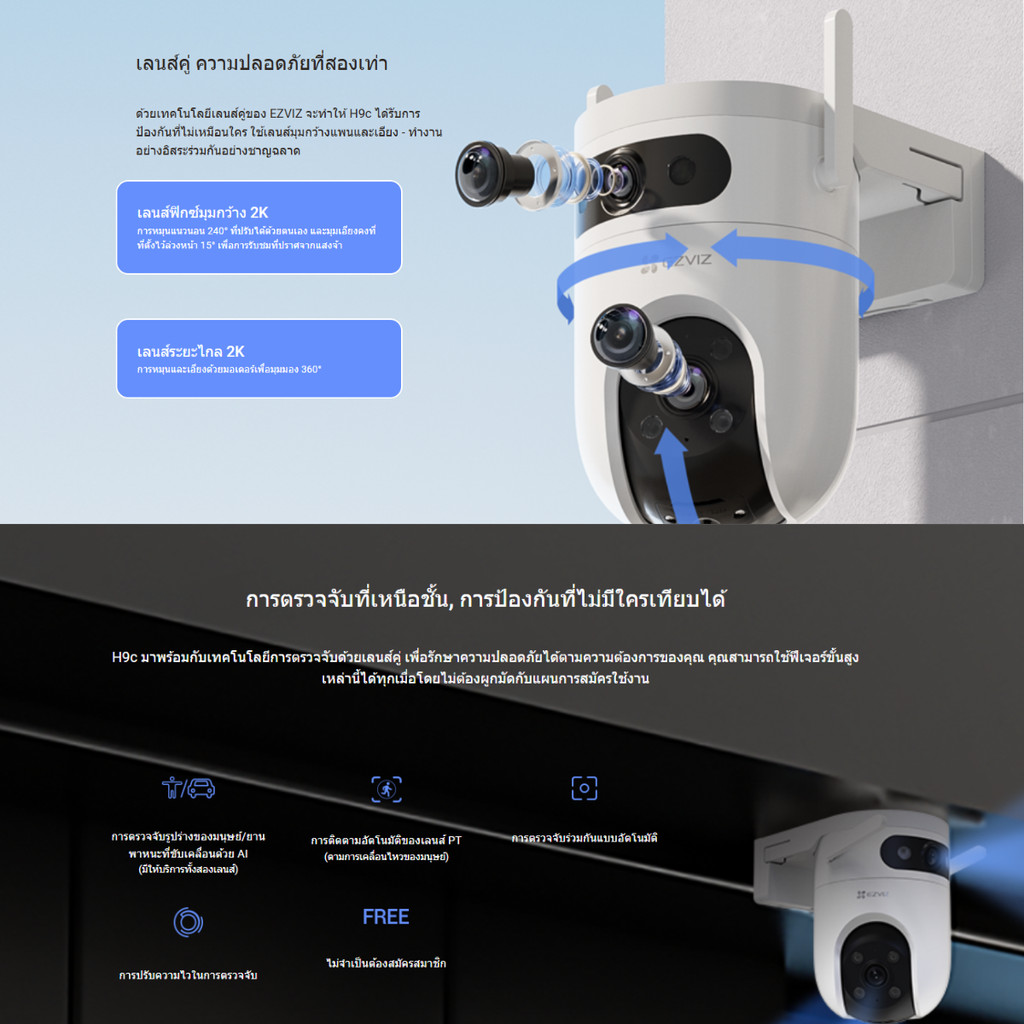 EZVIZ H9C DUAL 2K & 2K กล้องวงจรปิด Dual Lens ครอบคลุมมุมมอง 360° มองเห็นภาพสีกลางคืน มีเสา WiFi คู่