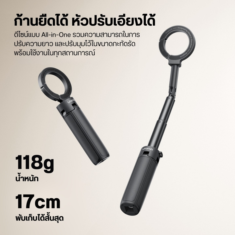 Ulanzi ขาตั้งมือถือ ไม้เซลฟี่ MT71 แม่เหล็ก 2 ด้าน ปรับมุม 180° ตะขอเกี่ยวในตัว ถ่ายมุมท็อป ถ่ายVlog
