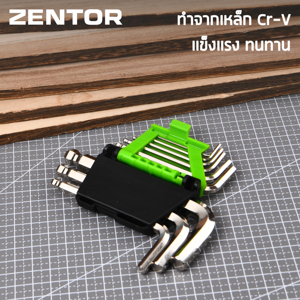 Zentor ชุดประแจหกเหลี่ยม หกเหลี่ยม 9 ชิ้น สั้น-ยาว Cr-V ทนทาน ป้องกันสนิม ใช้งานง่าย Hex Key Set