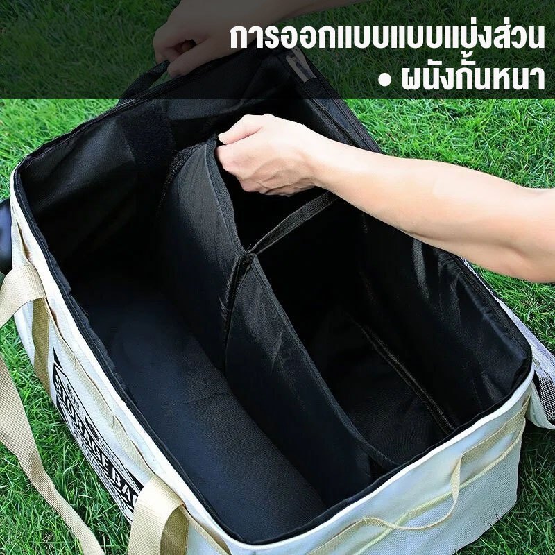 ถุงเก็บของสำหรับแคมป์ปิ้ง กันน้ำ ถุงเก็บของคุณภาพสูง ผ้าอ็อกซ์ฟอร์ด 600D สำหรับเดินทาง ปิกนิก และใช้ในบ้าน