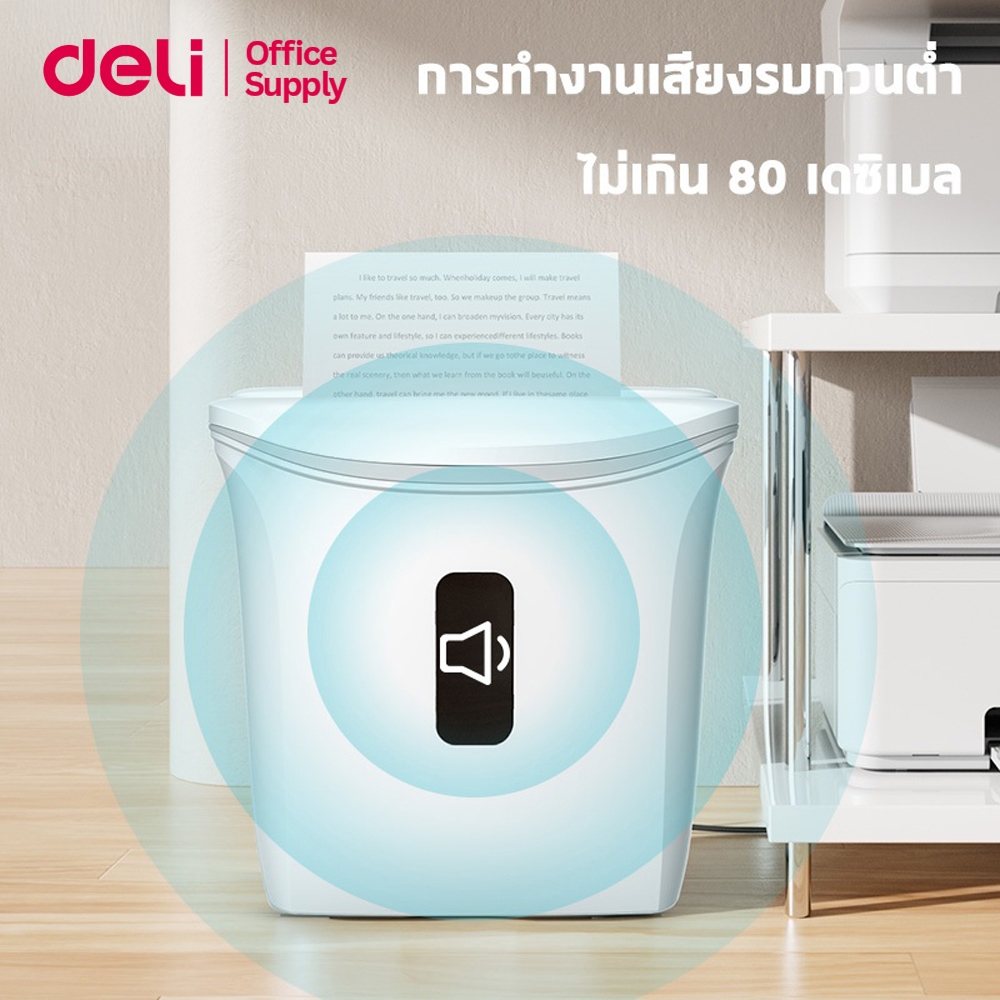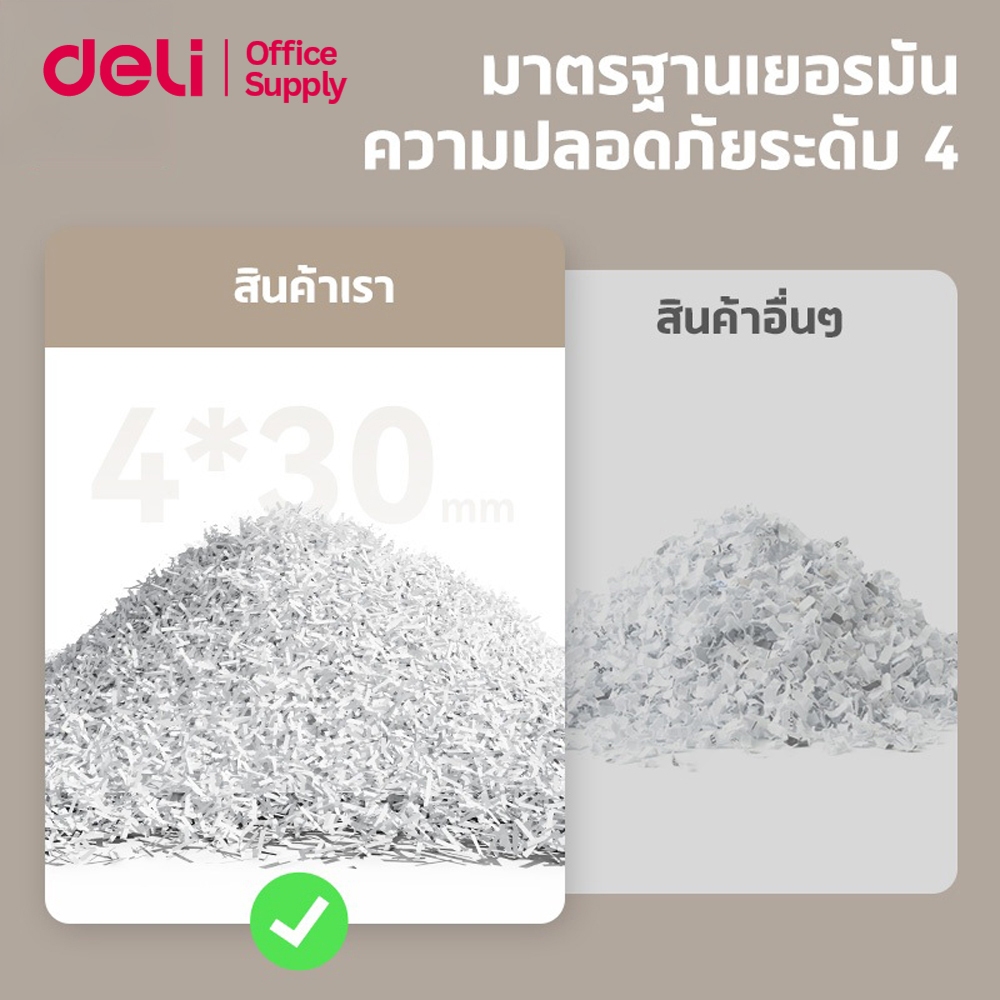 Deli เครื่องทำลายเอกสารA4 12 ลิตร เครื่องย่อยระดับความปลอดภัย DIN Security Level 4 Paper Shredder