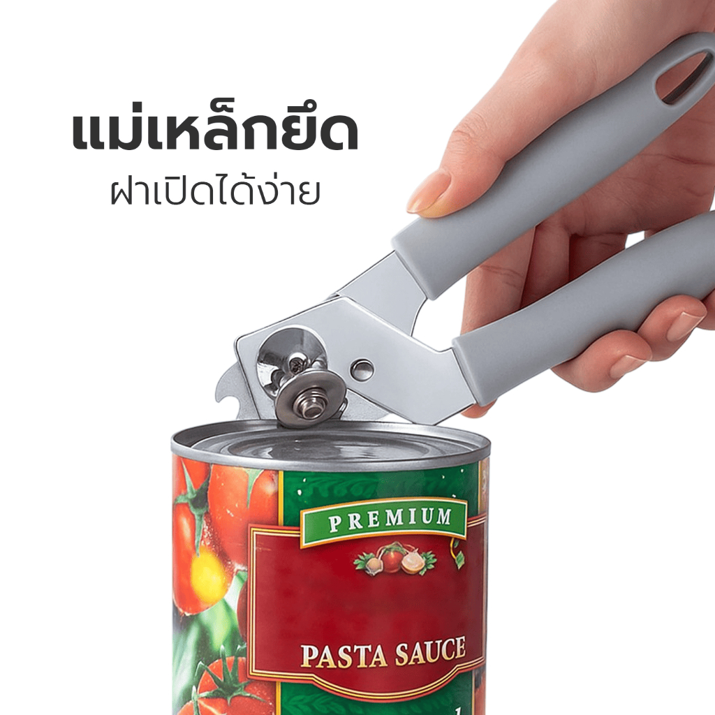 HOMEC ที่เปิดกระป๋อง อุปกรณ์เปิดกระป๋อง Can opener วัสดุสแตนเลส ด้ามจับซิลิโคนจับถนัดมือใช้งานง่าย พกพาสะดวก สีเทา