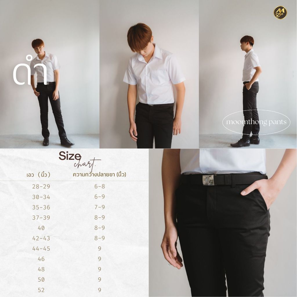 มุมทอง กางเกงนักศึกษาชาย ผ้ากัมมะดิน สีดำ Oversize (เอว 42-52")