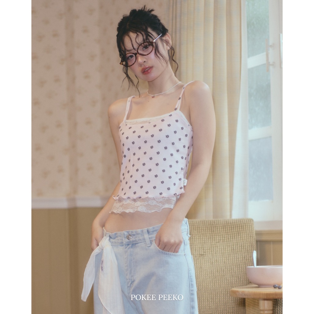 POKEE | LAYERED TANK TOP เสื้อสายเดี่ยว dot & lace ( set 2 ชิ้น ใส่เเยกได้)
