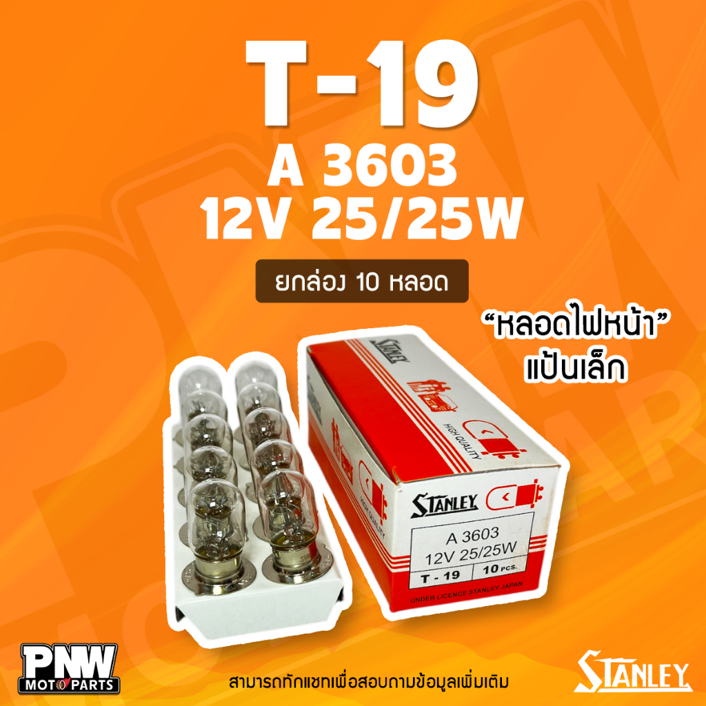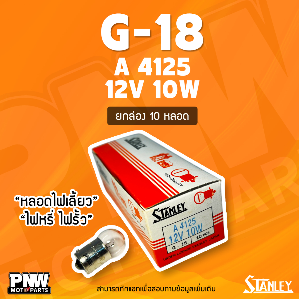 STANLEY หลอดไฟมอเตอร์ไซค์ 12V (10 หลอด/กล่อง) | T-19 ไฟหน้า / S-25 ไฟท้าย / G-18 ไฟเลี้ยว-หรี่ เลือกได้