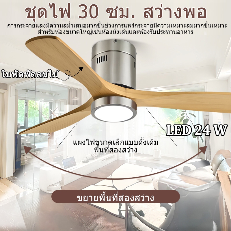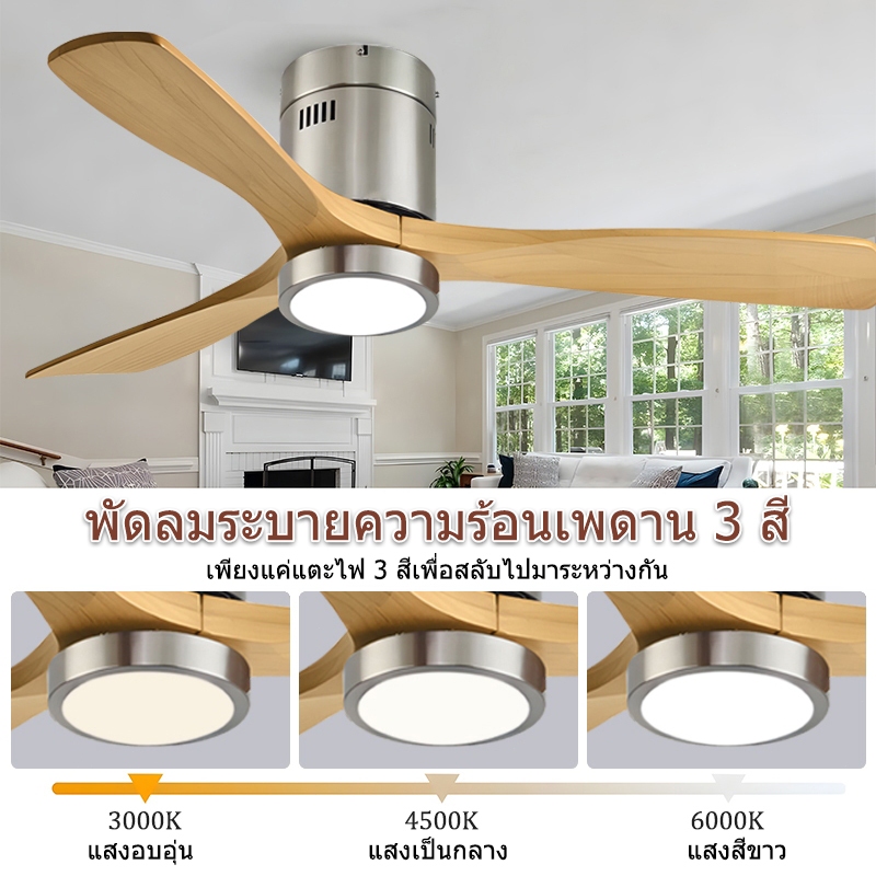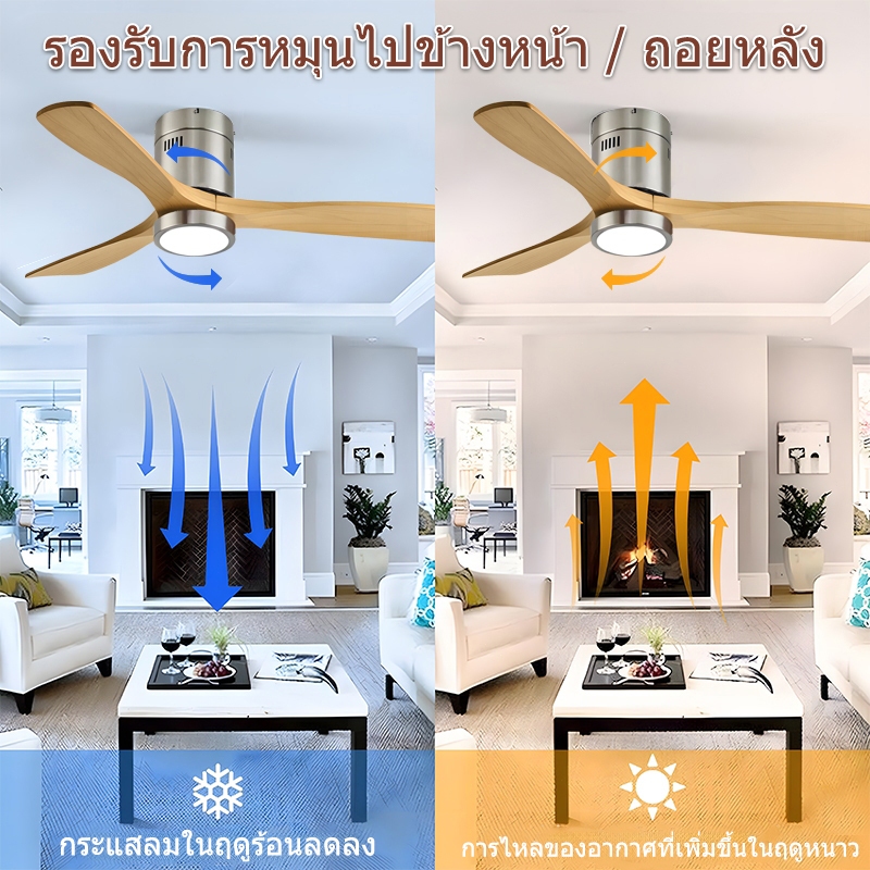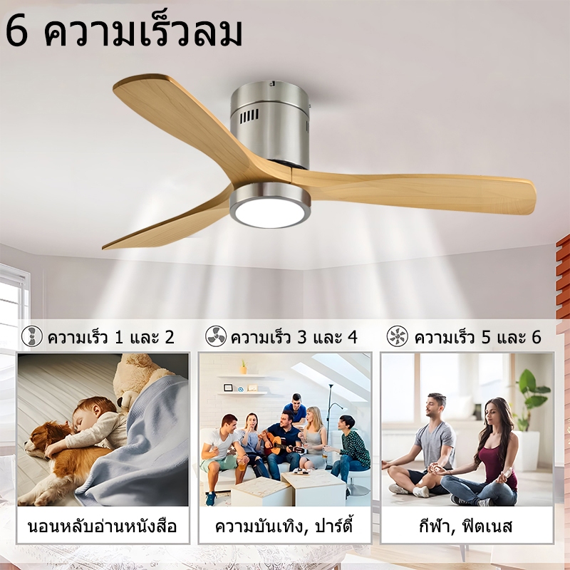 GOGEOUS พัดลมเพดาน 48 นิ้ว สำหรับห้องนอน/ห้องอาหาร พร้อมไฟในตัว+ควบคุมรีโมท มอเตอร์ DC ไร้เสียงรบกวน พัดลมเพดานมีไฟ