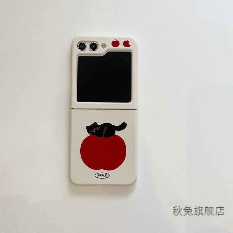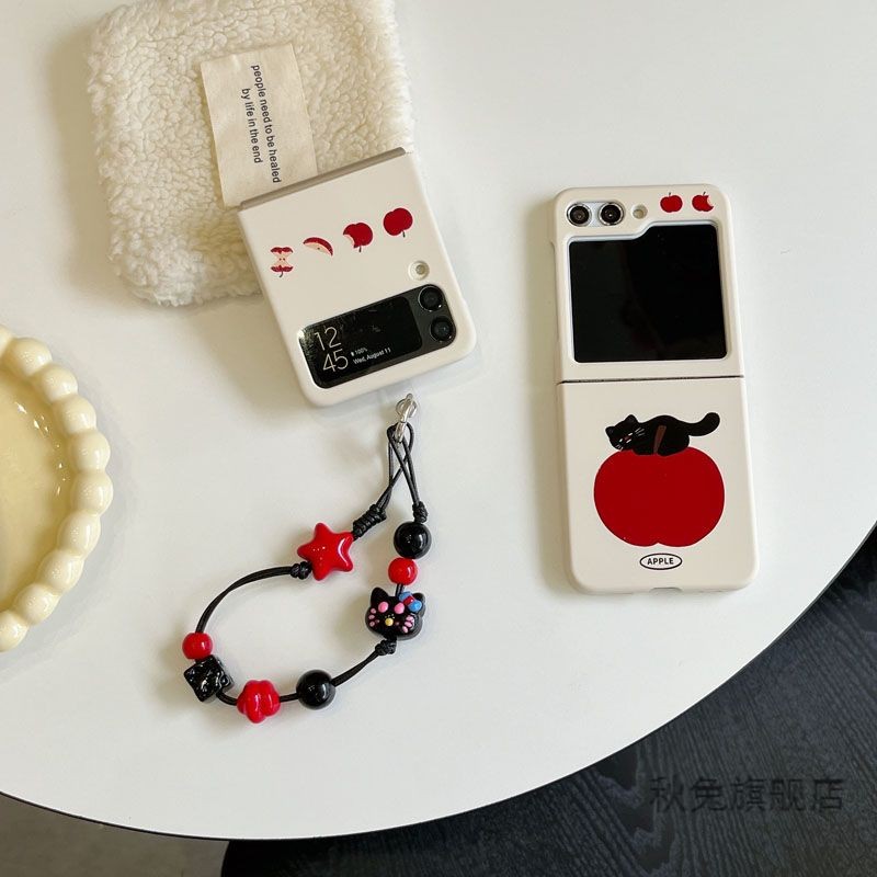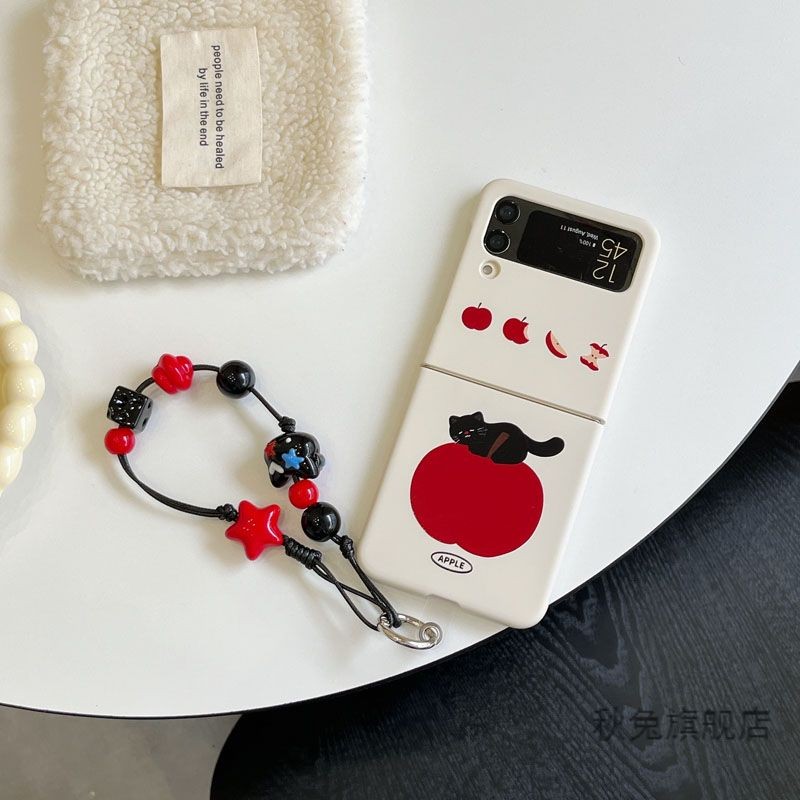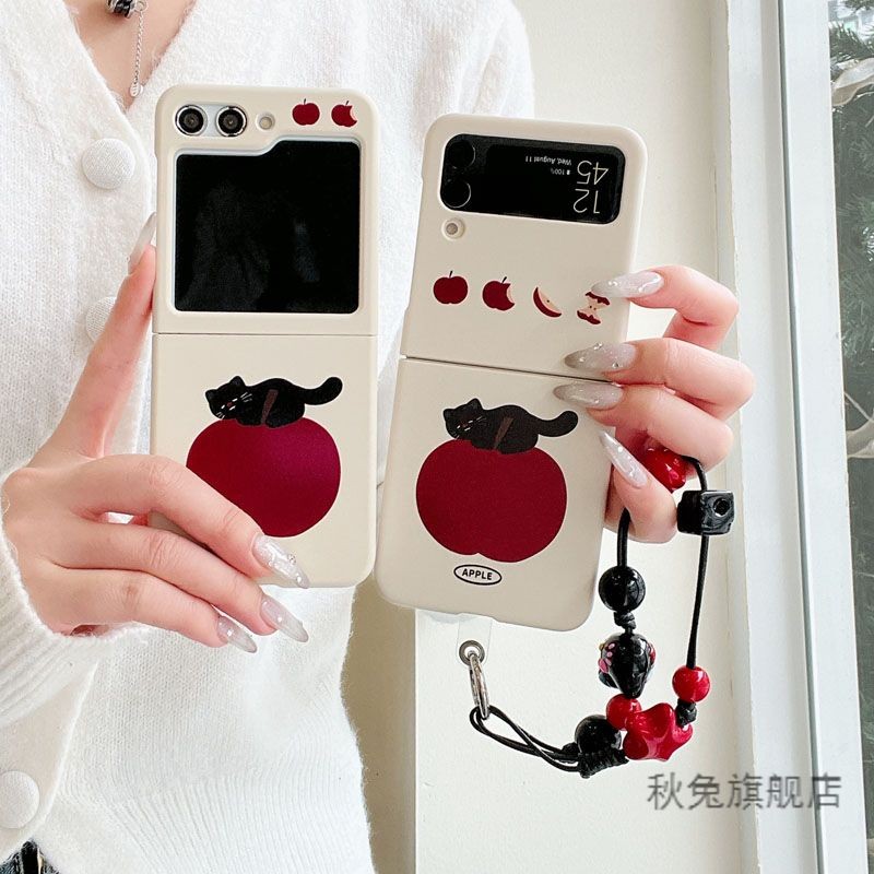 LUKEN เคสโทรศัพท์สําหรับ Samsung Galaxy Z Flip 7 6 5 4 3 ค้นหา N2 Flip N3 Flip น่ารัก Apple Cat ฝาหลังพร้อมสร้อยข้อมือสําหรับ Flip3 Flip4 Flip5 Flip6 N2Flip N3Flip