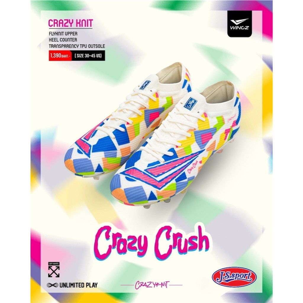 WINGZ Crazy Crush KNiT (PRO) รองเท้าสตั๊ดหุ้มข้อแบบไร้เชือก/แบบมีเชือก รองเท้าฟุตบอล เด็ก/ผู้ใหญ่