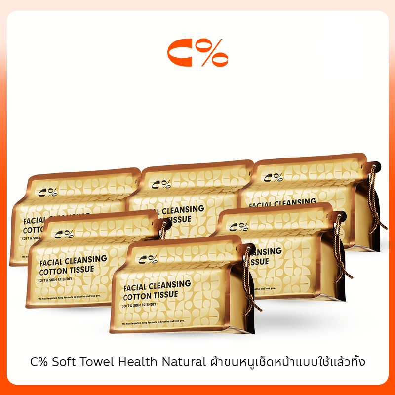 【6 แพ็ค】ผ้าฝ้าย เช็คหน้า c% cpercent ผ้าเช็ดหน้า ทิชชู่เช็ดหน้า ไร้ไรฝุ่น อ่อนโยน ไม่ระคายเคือง เหมาะผิวแพ้ง่าย