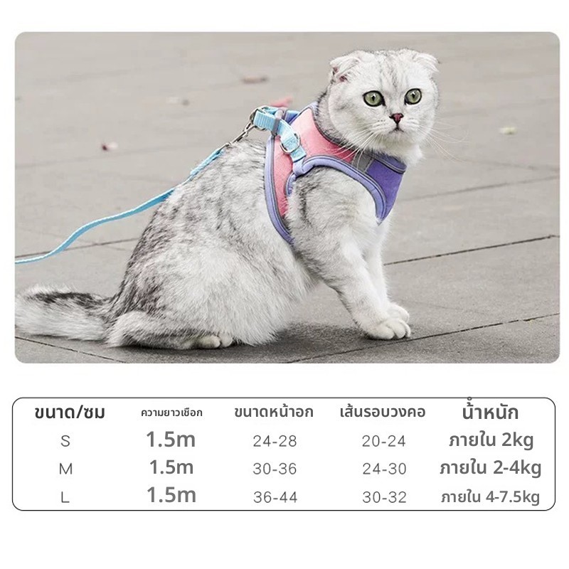 SKISOPGO สายจูงสัตว์เลี้ยง สายจูงแมวรัดอก เสื้อ เสื้อรัดอกแมว สะท้อนแสงกลางคืน ปรับระดับได้