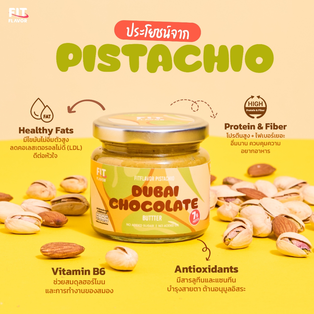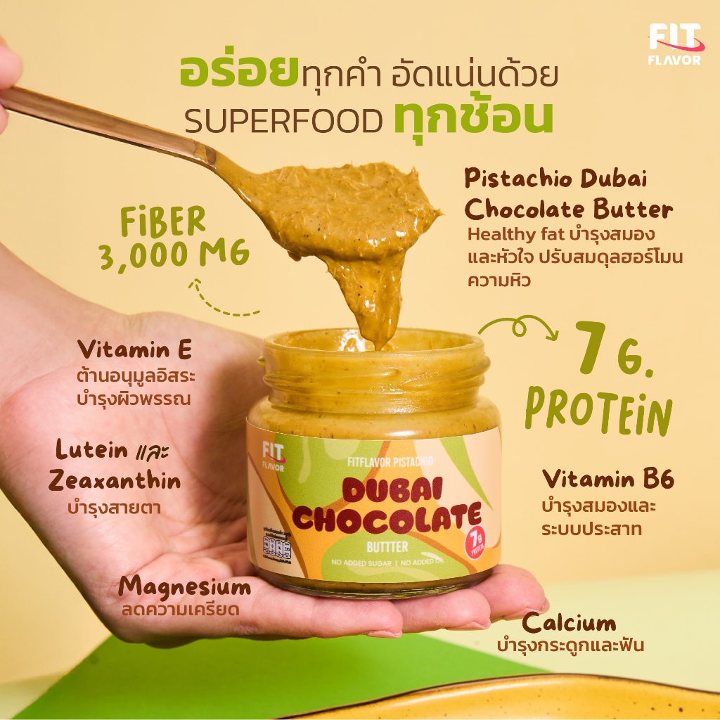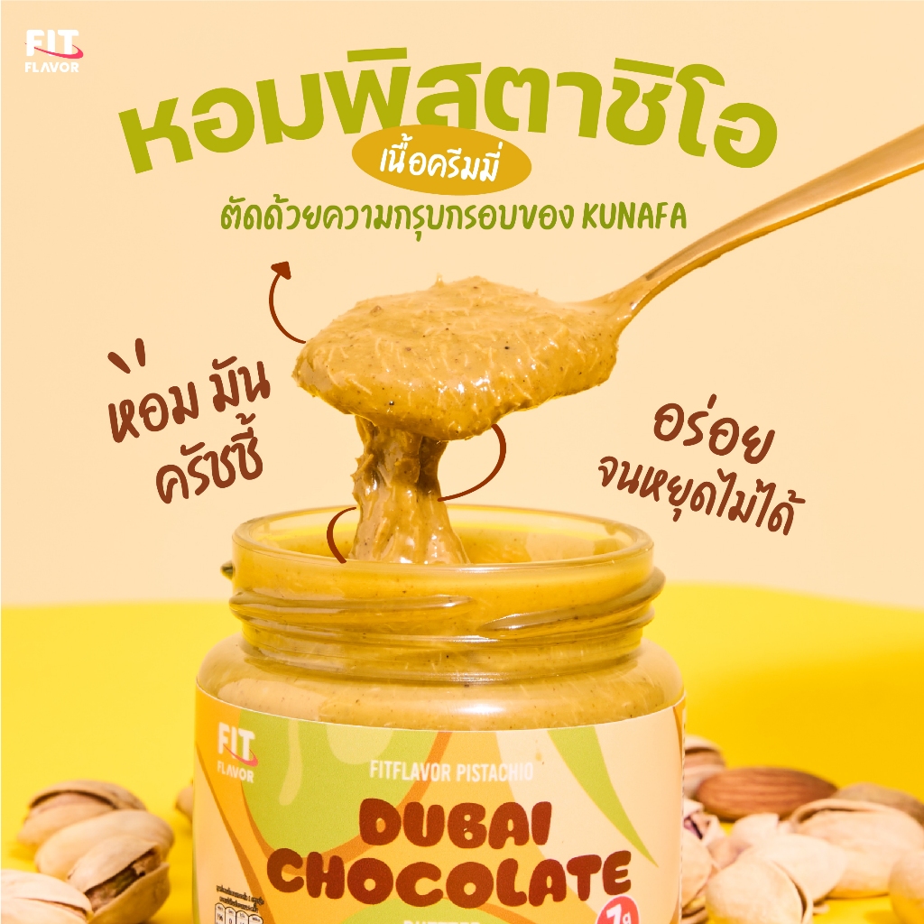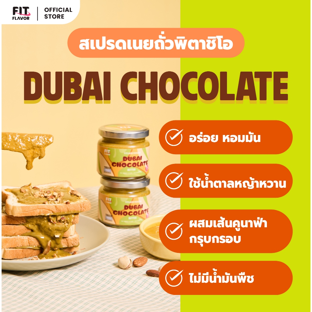 FITFLAVOR SPREAD DUBAI CHOCOLATE BUTTER สเปรดเนยถั่วพิสตาชิโอคลีน ช็อคโกแลตเกรดพรีเมียม พลังงานที่ช่วยให้อิ่มนานและไม่พ