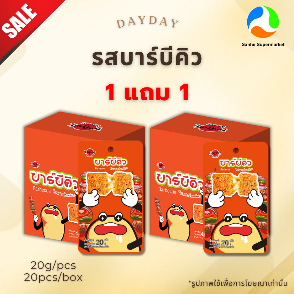 (1แถม1) DayDay ซอยโปรตีนสแน็ค รสสเต็กหม่าล่าและบาร์บีคิว (20ซอง/กล่อง)