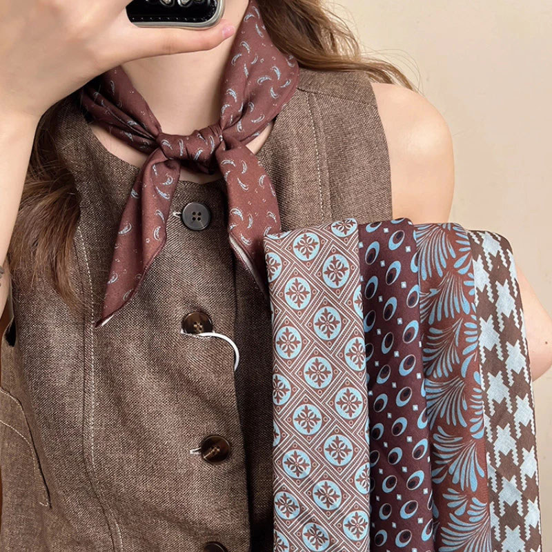 COD-ในไทย💖ผ้าพันคอลายไหมสีน้ำตาลสำหรับฤดูหนาววินเทจแฟชั่น อเนกประสงค์ เหมาะสำหรับใช้เป็นเข็มขัดและที่คาดผม-Kri
