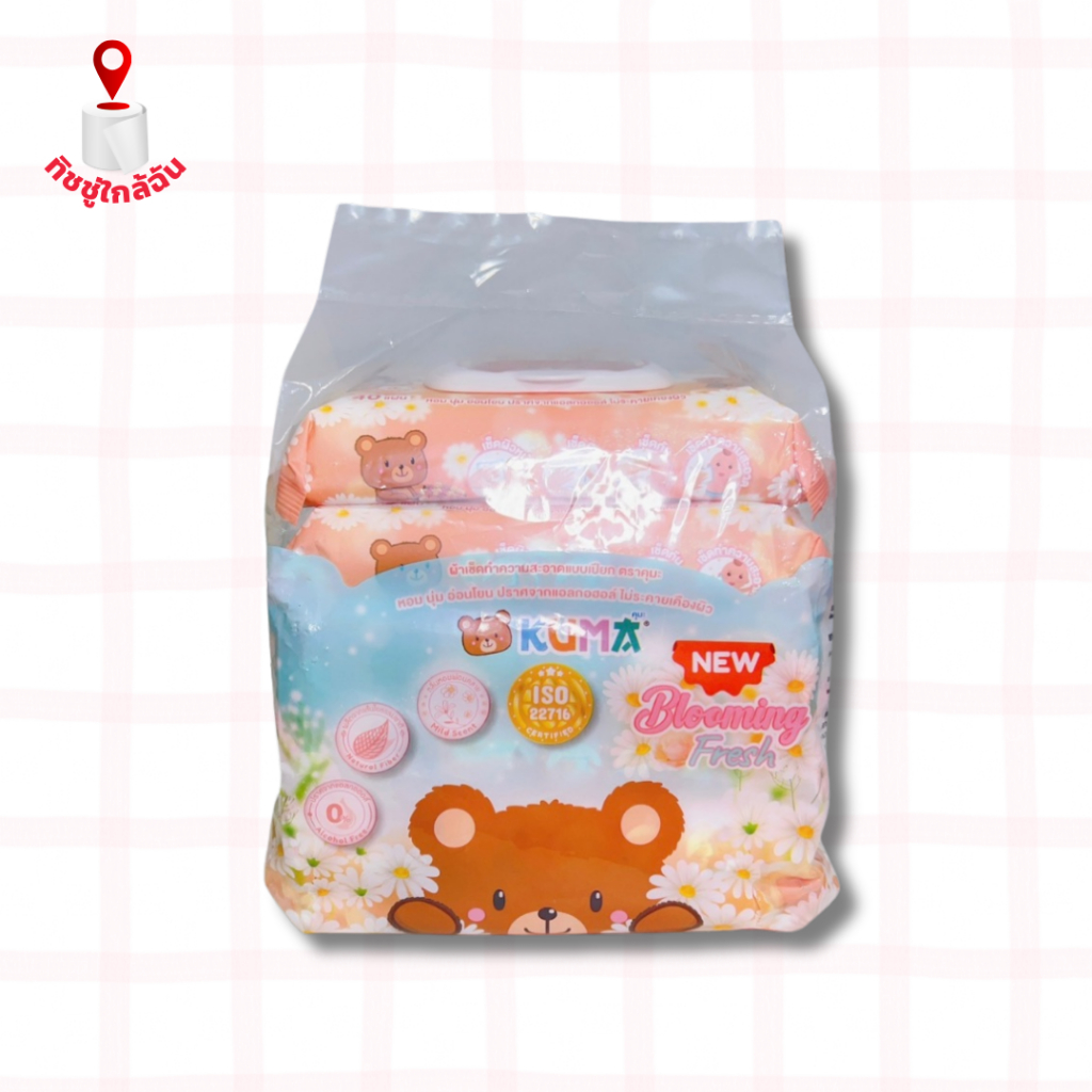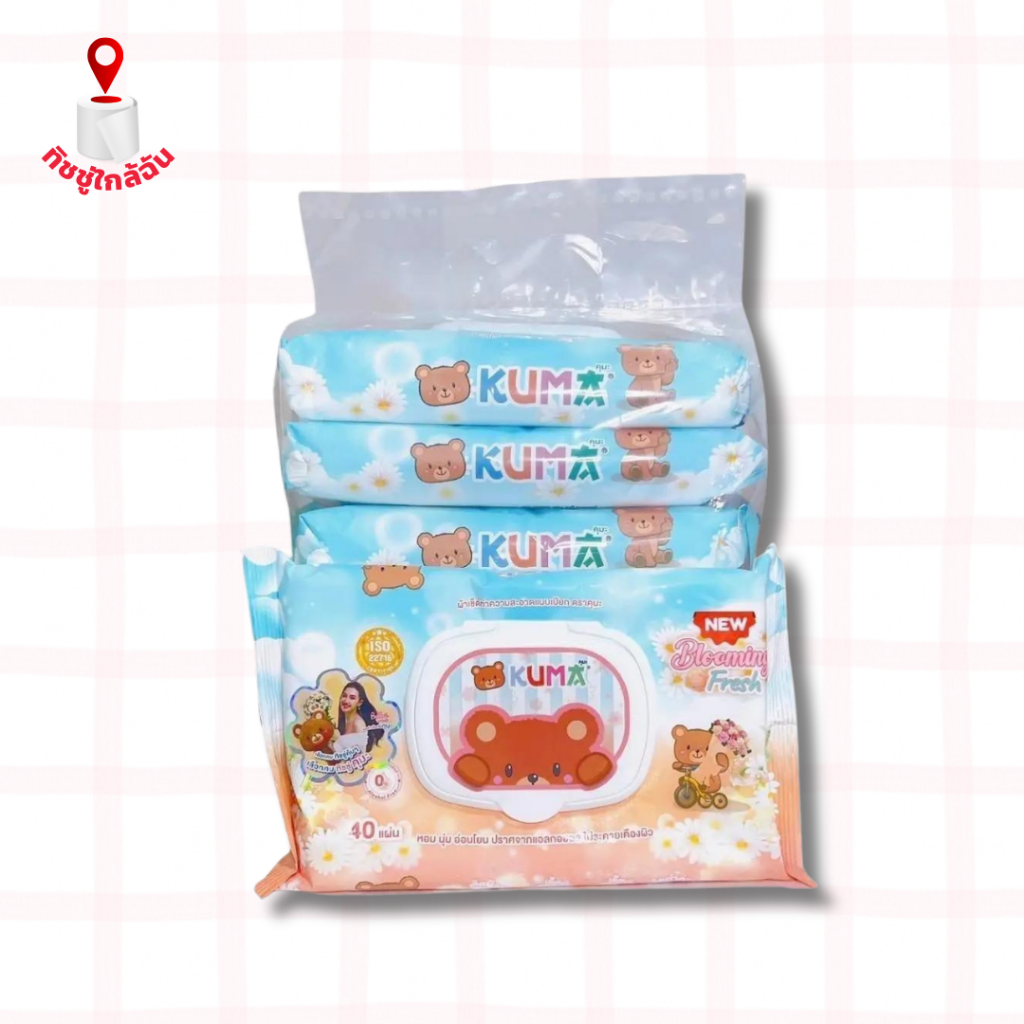 1 แพค 6ห่อ KUMA ทิชชู่เปียก คุมะ 40 แผ่น กลิ่น blooming fresh แพค 6 ห่อ (ห่อแบน) ทำความสะอาด