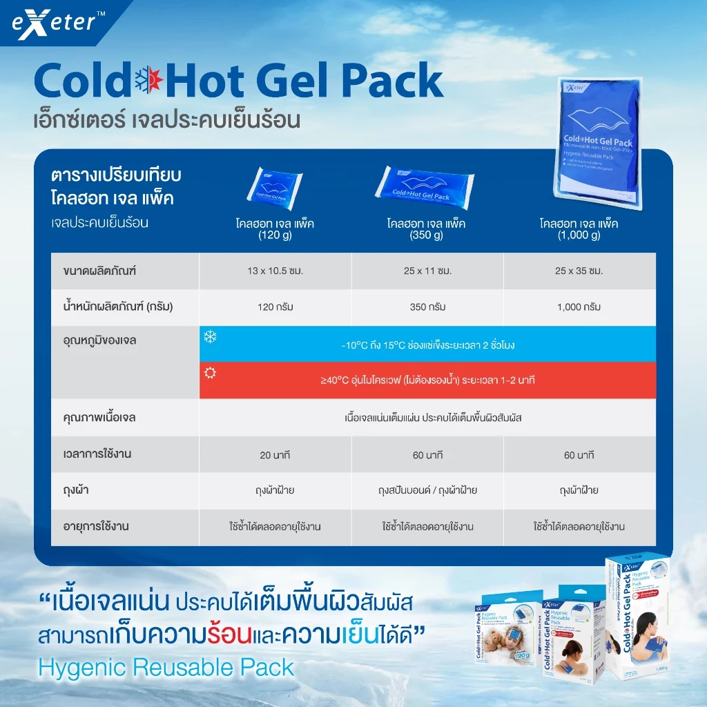 EXETER เจลประคบ COLD HOT GEL PACK 120G (แถมถุงผ้า)