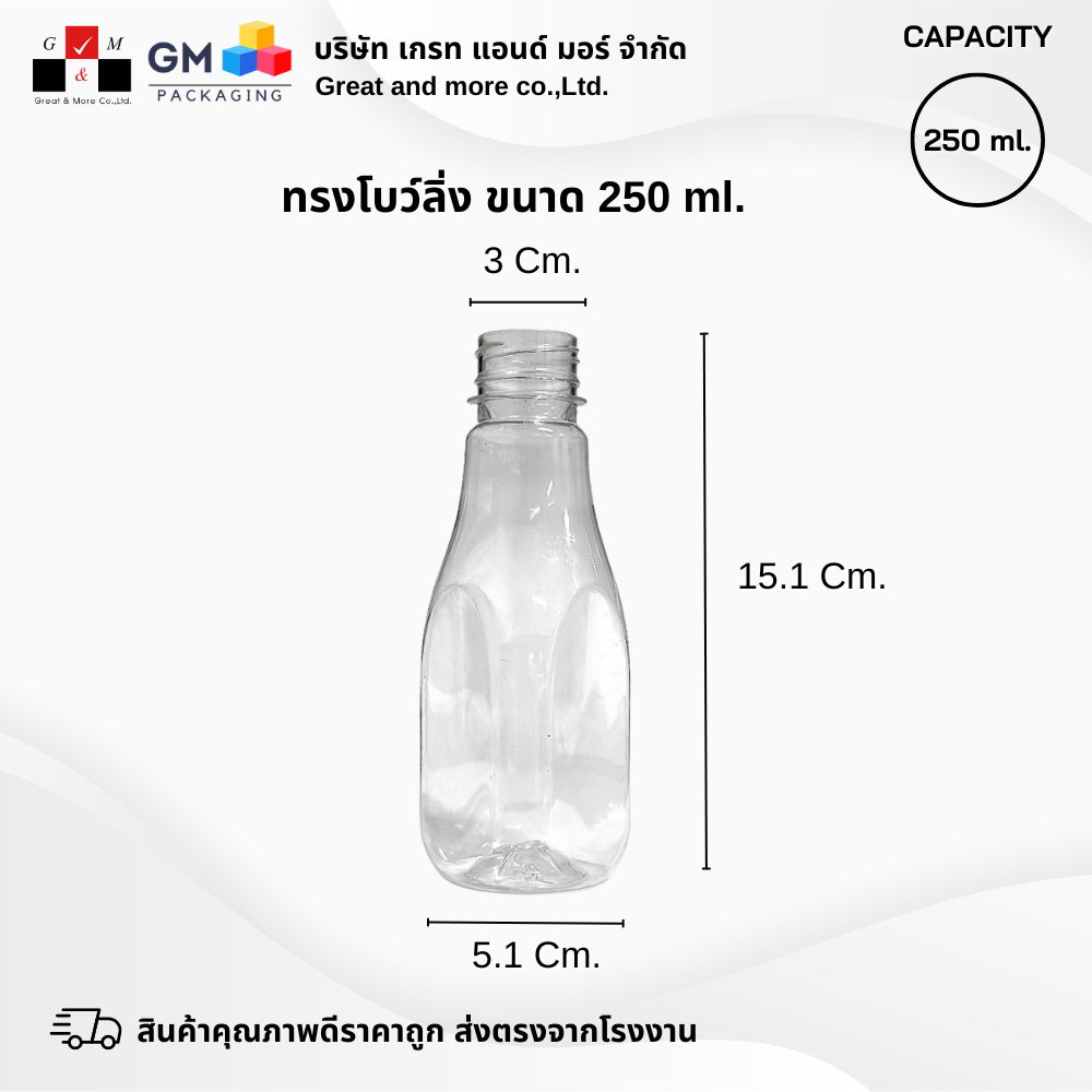 ขวดพลาสติก PET ขวดทรงโบว์ลิ่ง 250ml(แพ็ค 100 ขวดพร้อมฝา)