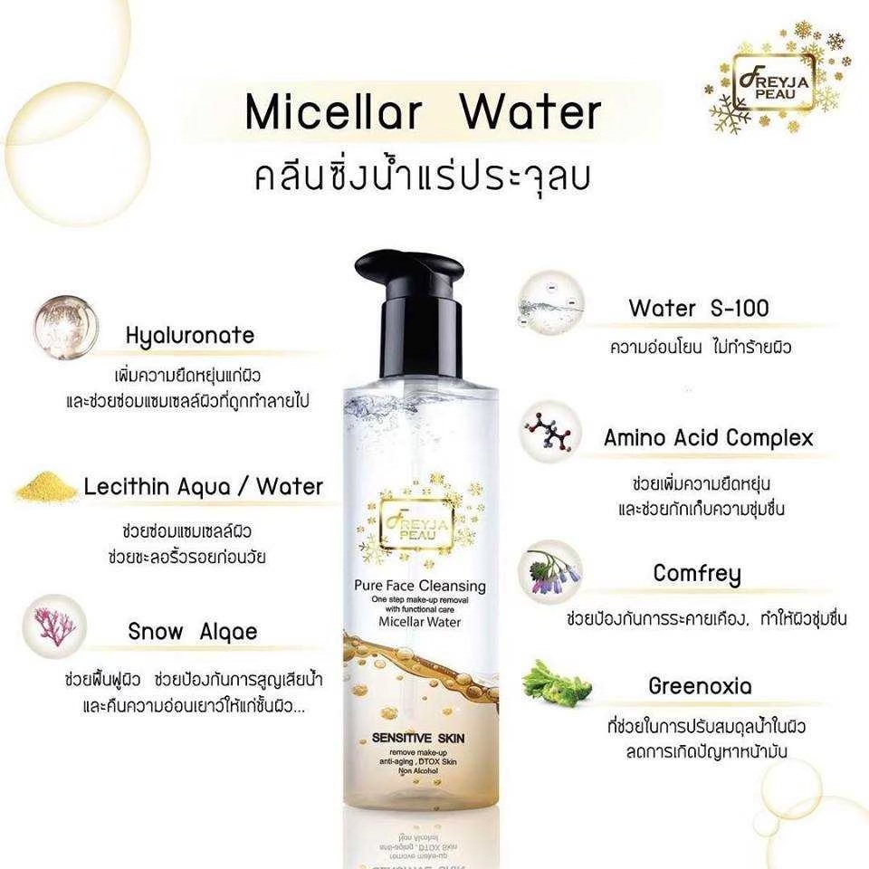 Freyja Cleansing Water ไมเซลล่าคลีนซิ่งผสาน Hyaluron คลีนซิ่งลดสิว คลีนซิ่งผิวสวยเรียบเนียน เช็ดเครื่องสำอางหมดจด