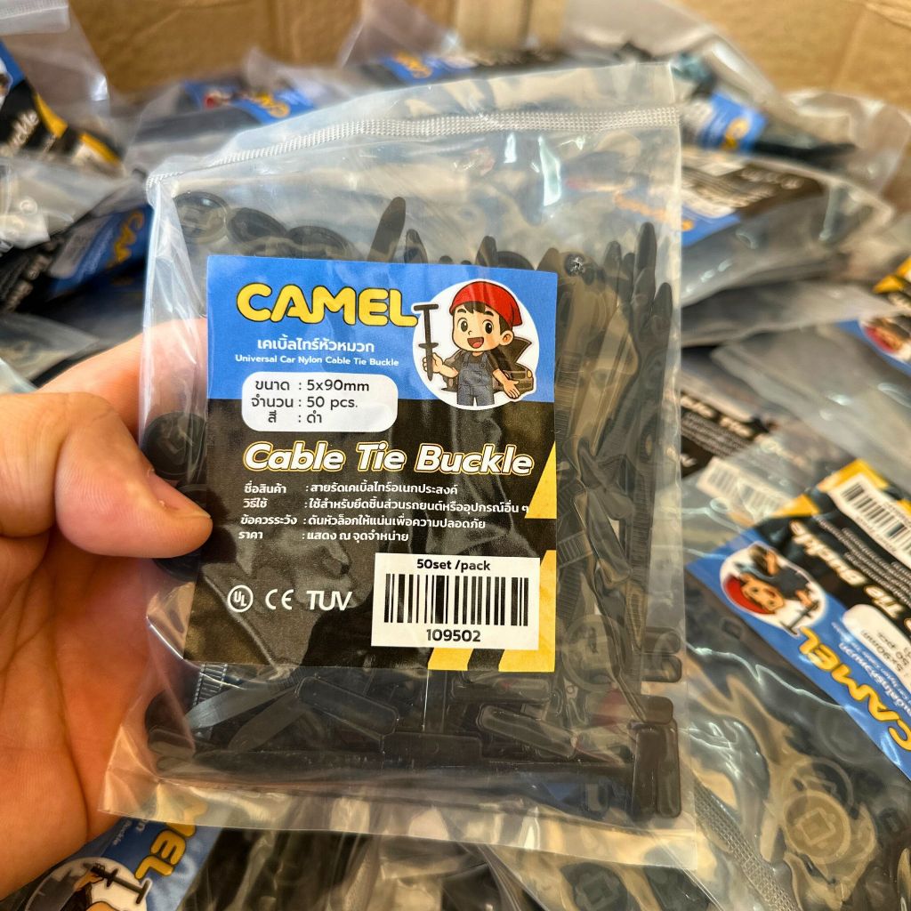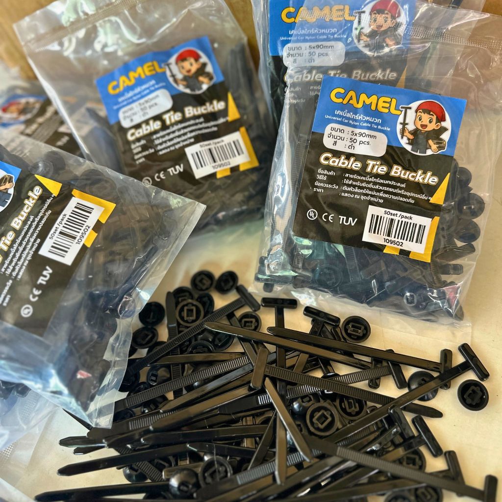 Camel เคเบิ้ลไทร์ หัวหมวก cabletie buckle คลิปล๊อคอเนกประสงค์ สำหรับซ่อมรถ/ยึดสายไฟ ใช้ง่าย ทนทาน!