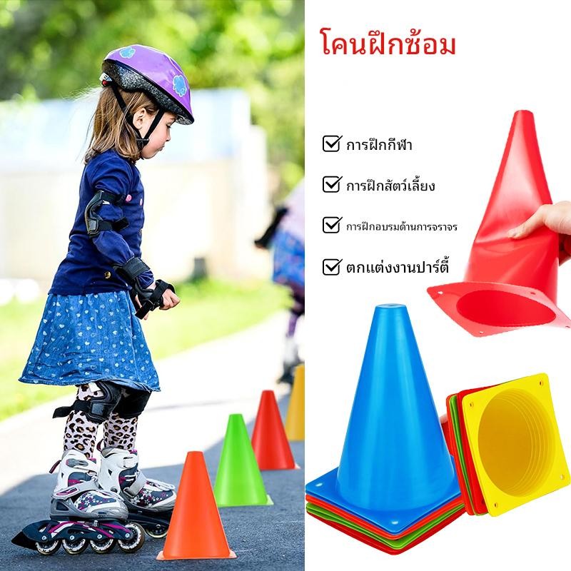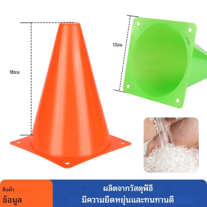 กรวยพลาสติก 18 ซม. 10 ชิ้น เหมาะสำหรับฝึกฝนฟุตบอลและการจราจร