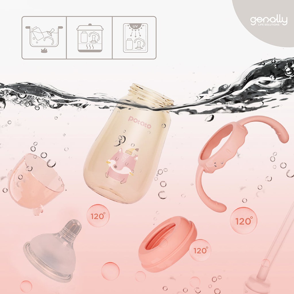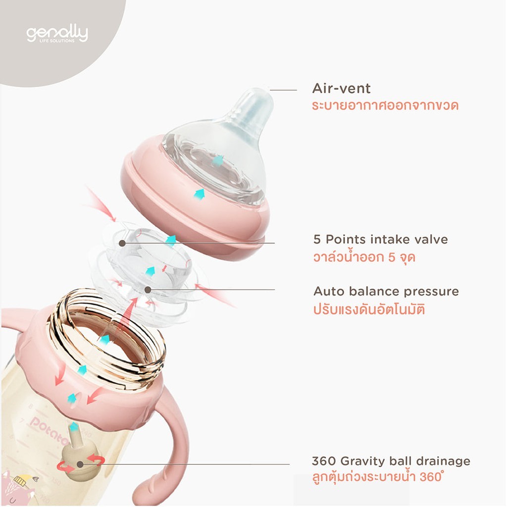 [แพ็ค 2 ขวด : ฟ้า&ชมพู] Genally ขวดนม PPSU สีชา คอกว้าง 10 ออนซ์ นึ่ง-อบได้ ปลอดสาร BPA (พร้อมจุกกันอากาศเข้าเวลาดูด)
