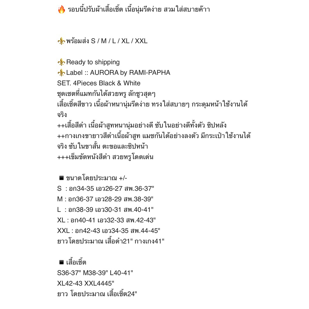 พร้อมส่ง เติมM⚡️AR 8398 ชุดเซต4ชิ้น สุดคุ้ม เสื้อสีดำ+ขายาวสีดำ+เชิ้ตสีขาว+เข็มขัด เรียบหรู