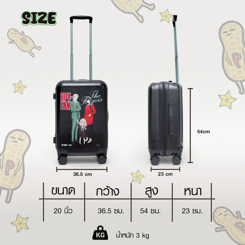 HQ LUGGAGE | SPY x FAMILY กระเป๋าเดินทาง 20 นิ้ว PC 100% ระบบล็อก 3 รหัส มาตรฐาน TSA 4 ล้อคู่ รุ่น SF008