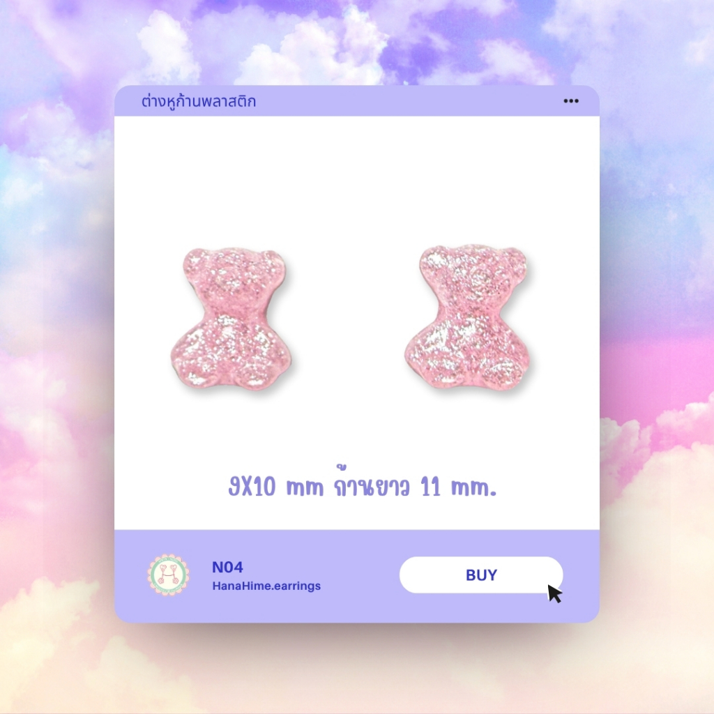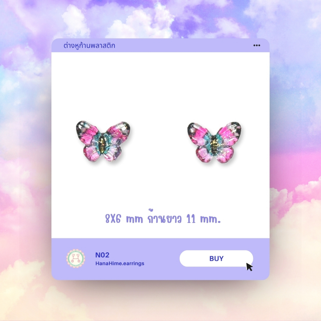 HanaHime.earrings - Purple and Pink Set ต่างหูชมพู ต่างหูสีม่วง แพ้ง่ายพิเศษใส่ได้ ต่างหูก้านพลาสติกใส