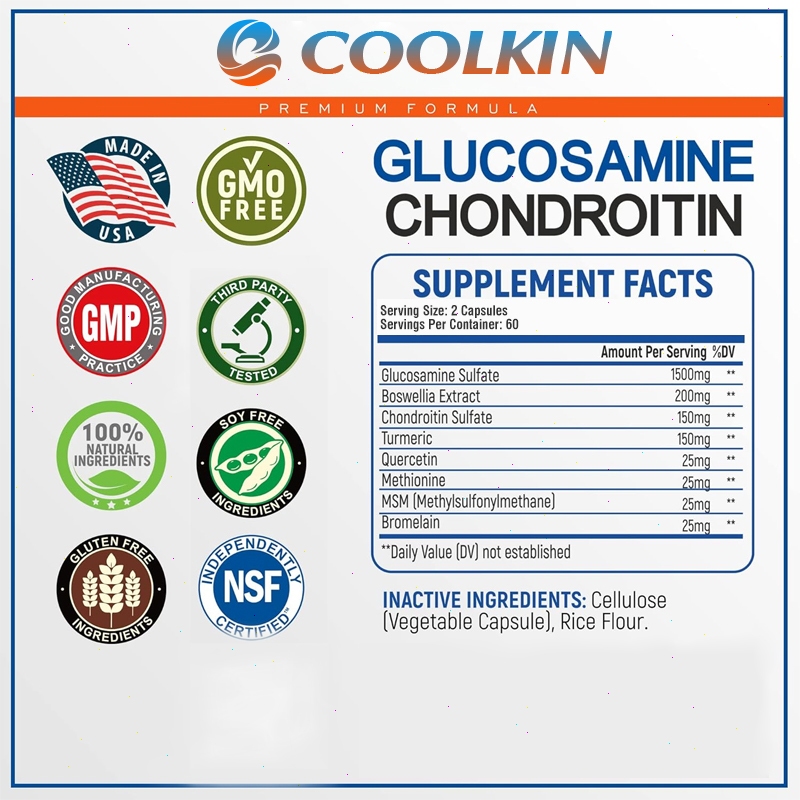 สนับสนุนข้อต่อและกระดูกอ่อน - กลูโคซามีน คอนโดรอitin, ขมิ้นเหลือง, ลบานา - แคปซูลอาหาร - 30/60/120 แคปซูล
